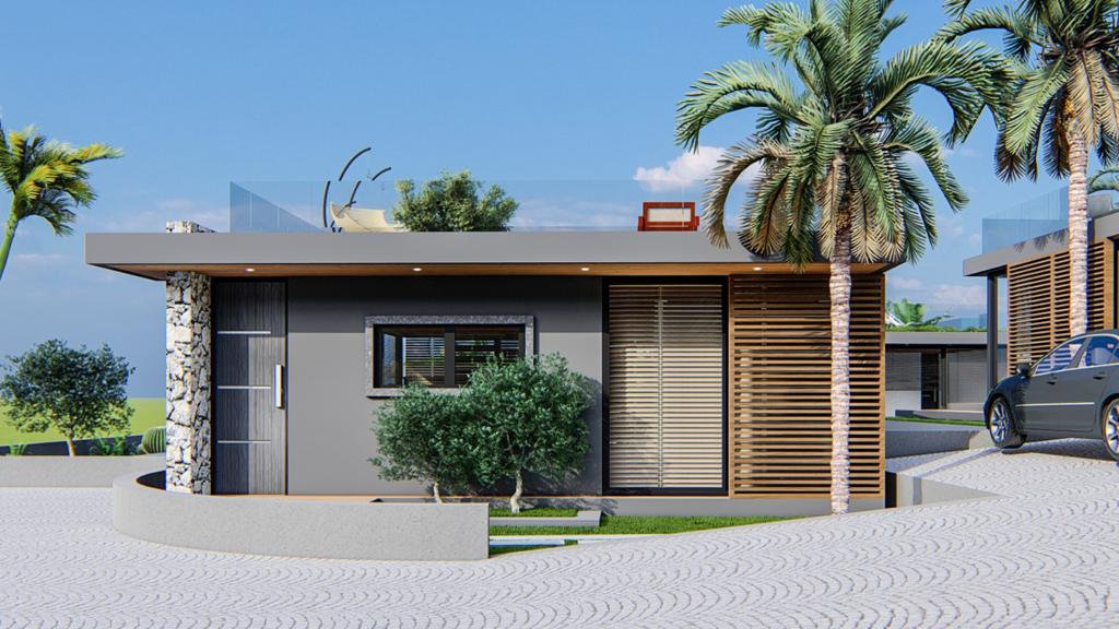 Домашняя страница Недвижимость в Северном КипреКиренияЧетырехкомнатный дом в стиле шале 100 м2 с террасами, садом и бассейном в Караагаче