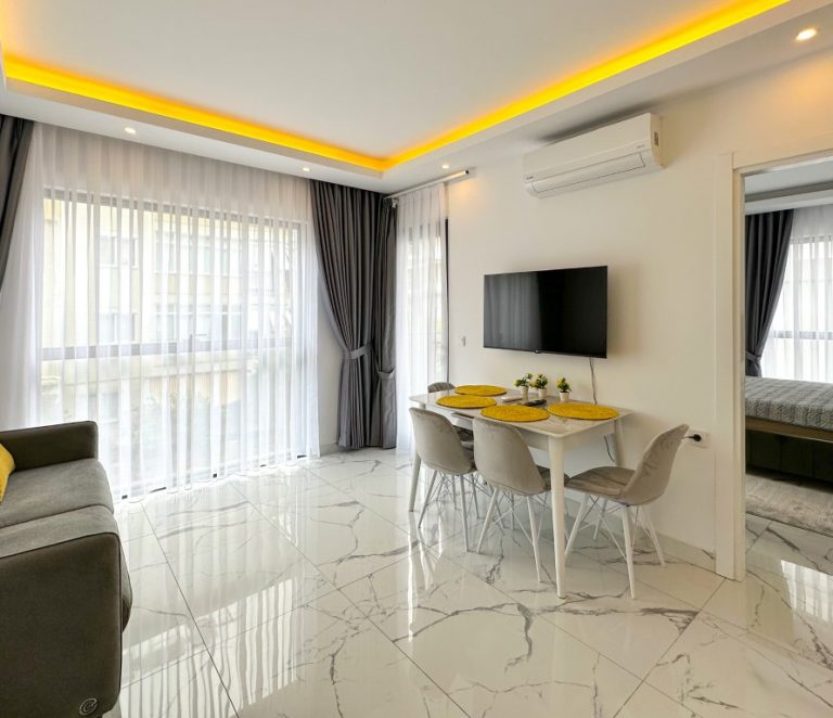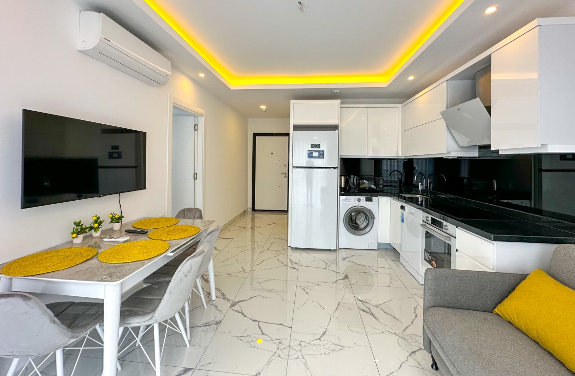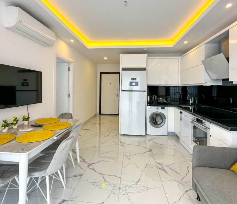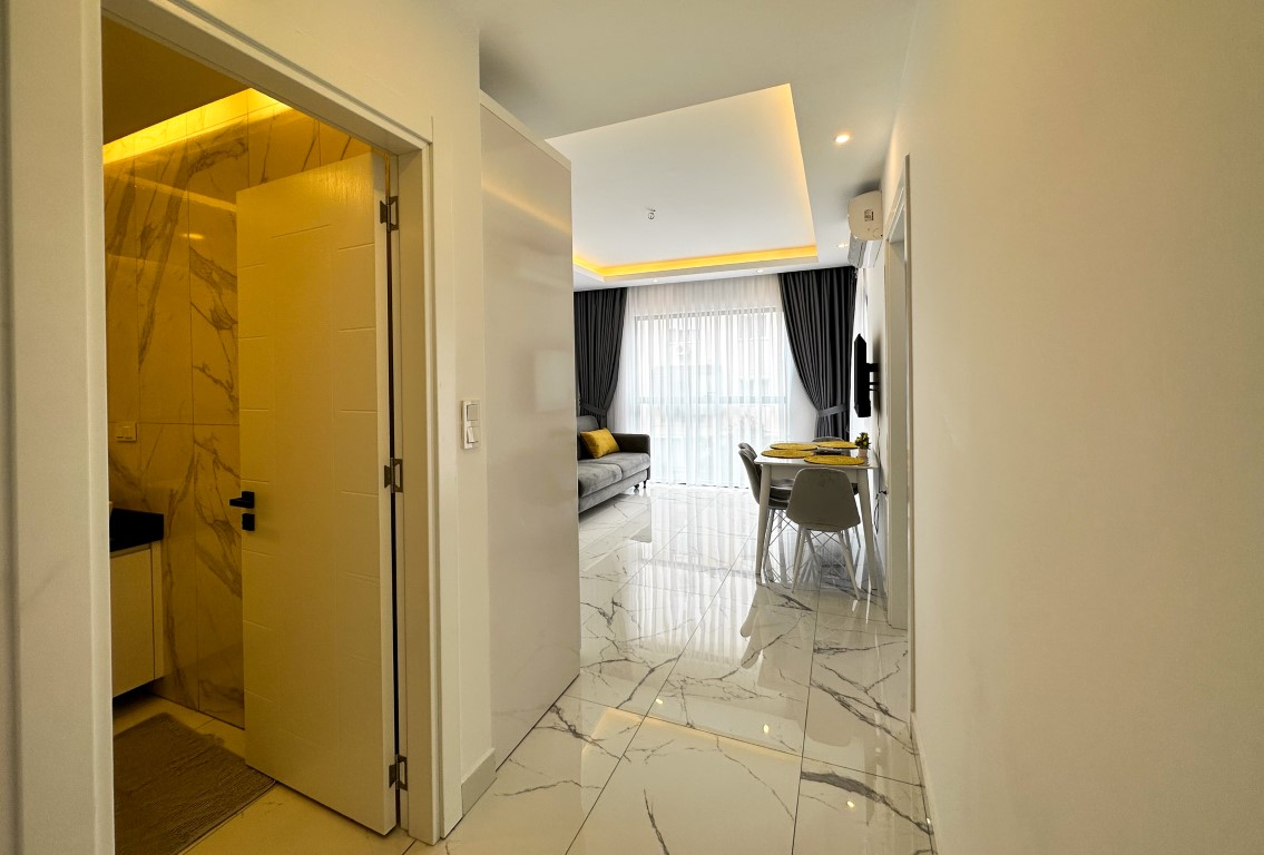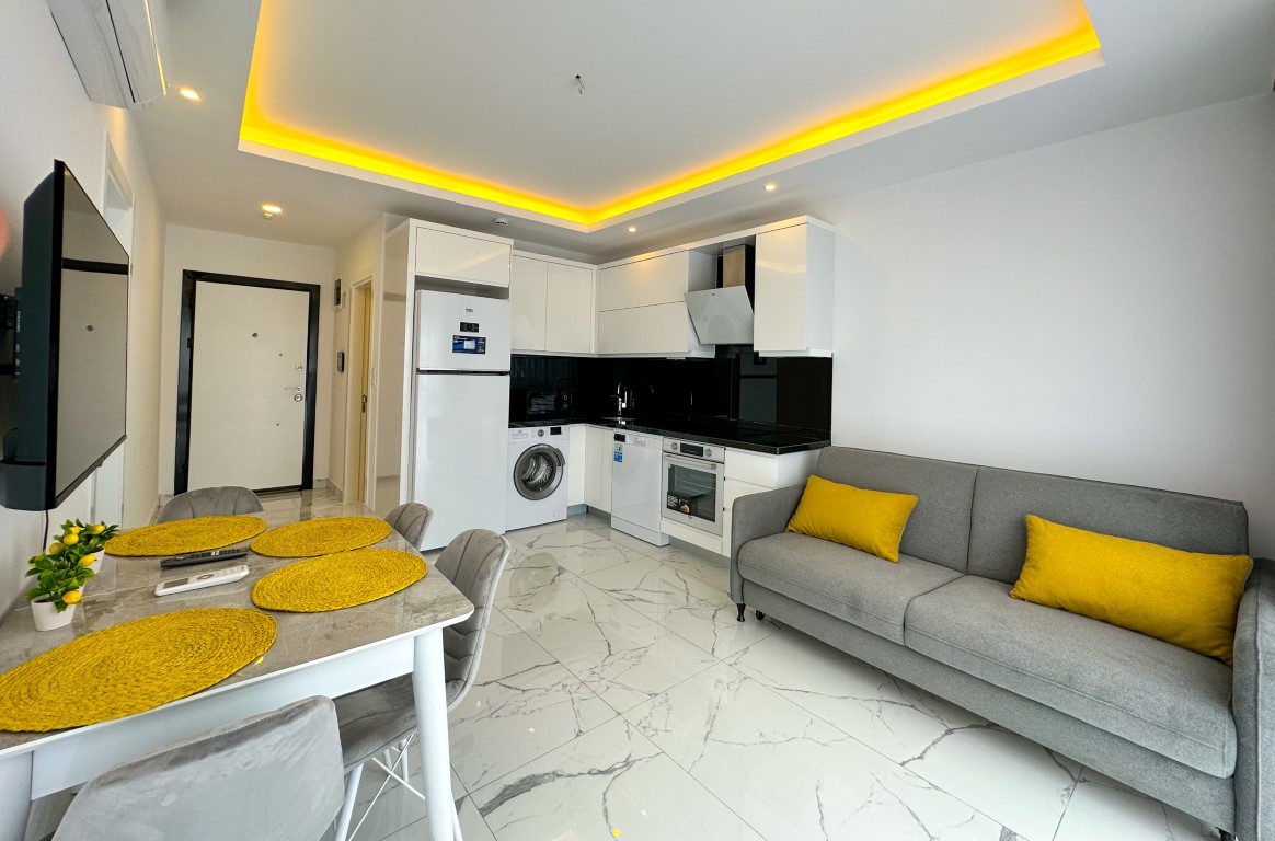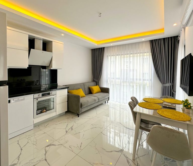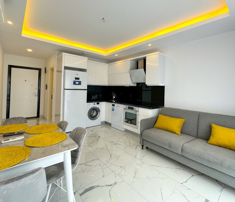 Продается квартира планировки 1+1 в новом современном комплексе Demir Home City в центре Аланьи. Квартира расположена на 2 этаже 5-этажного дома и состоит из спальни, гостиной, совмещенной с кухней, санузла и балкона.