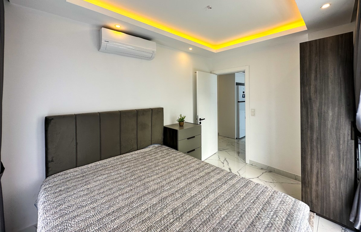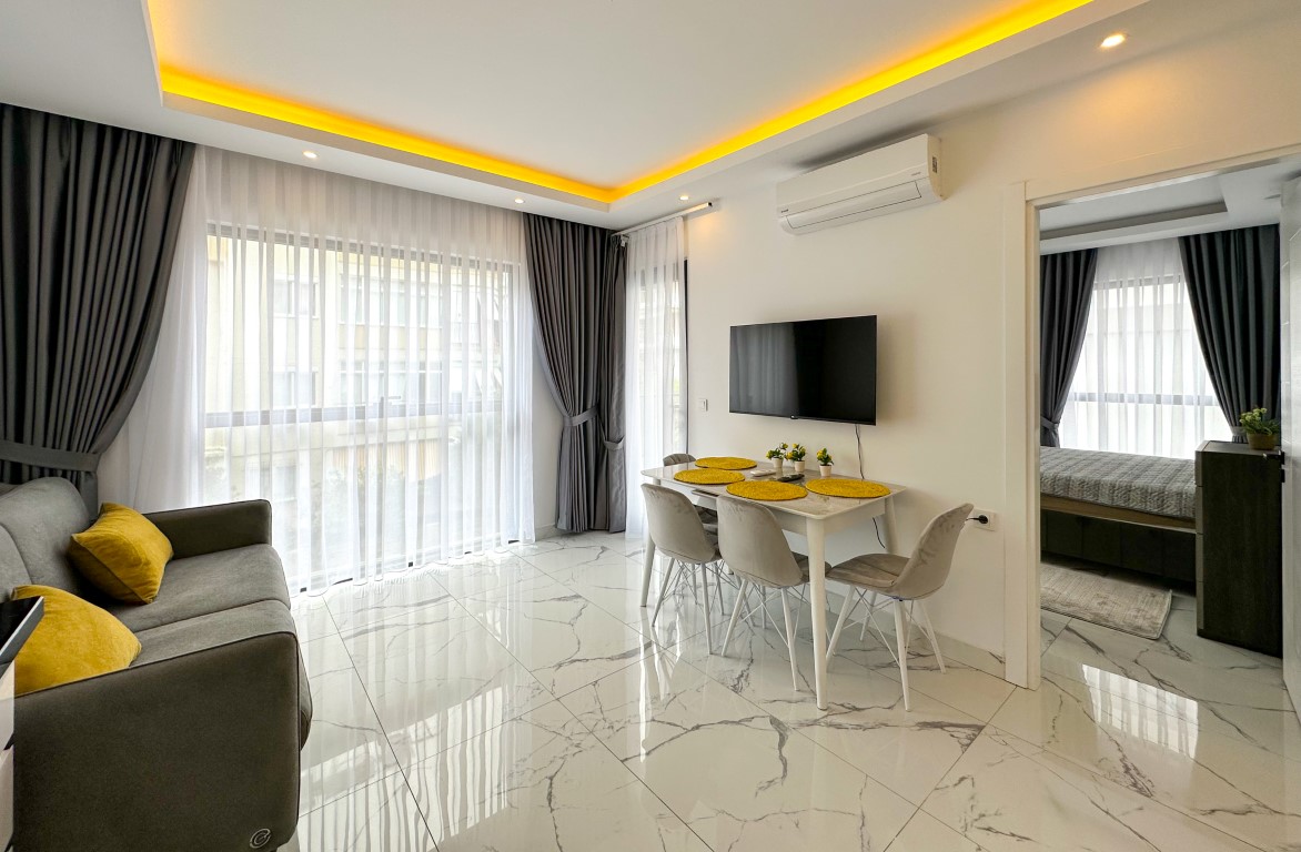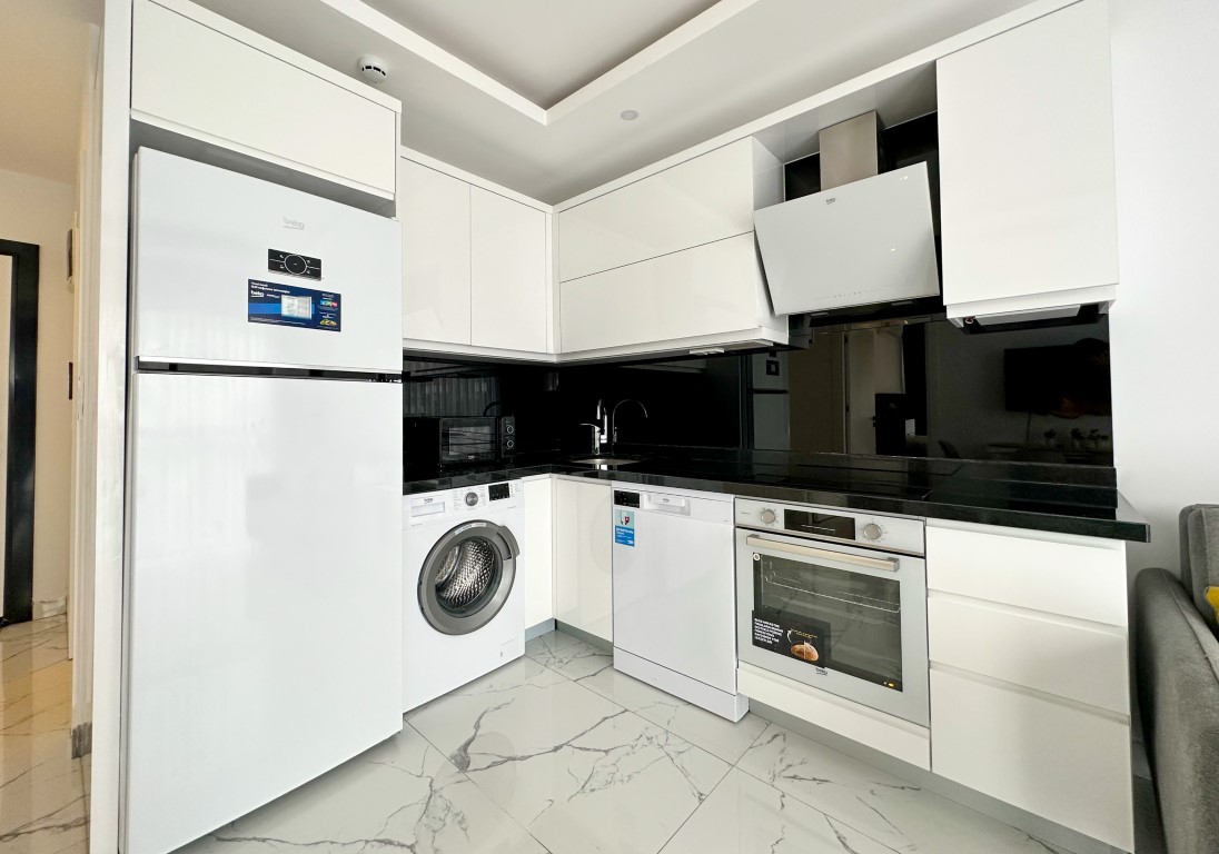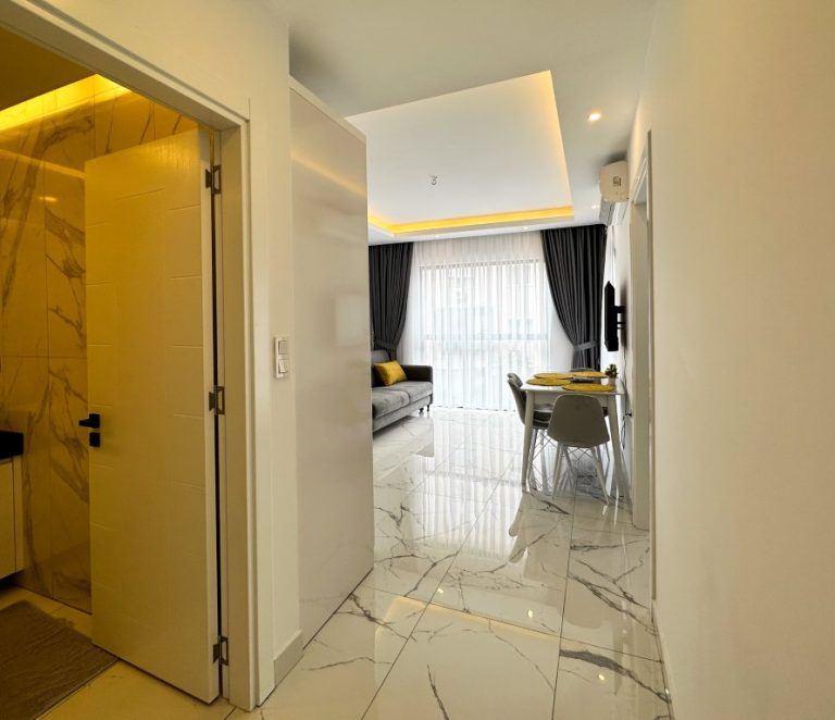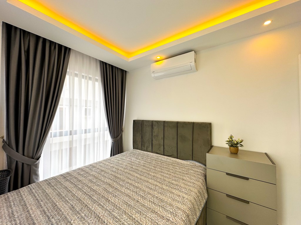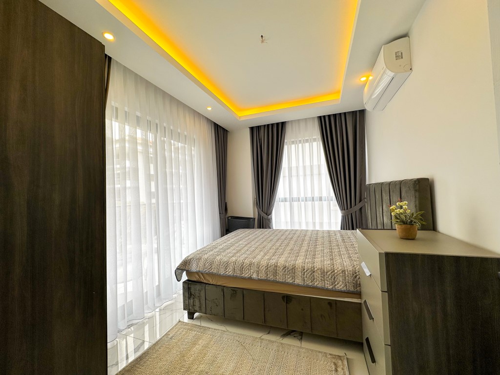 Продается квартира планировки 1+1 в новом современном комплексе Demir Home City в центре Аланьи. Квартира расположена на 2 этаже 5-этажного дома и состоит из спальни, гостиной, совмещенной с кухней, санузла и балкона.