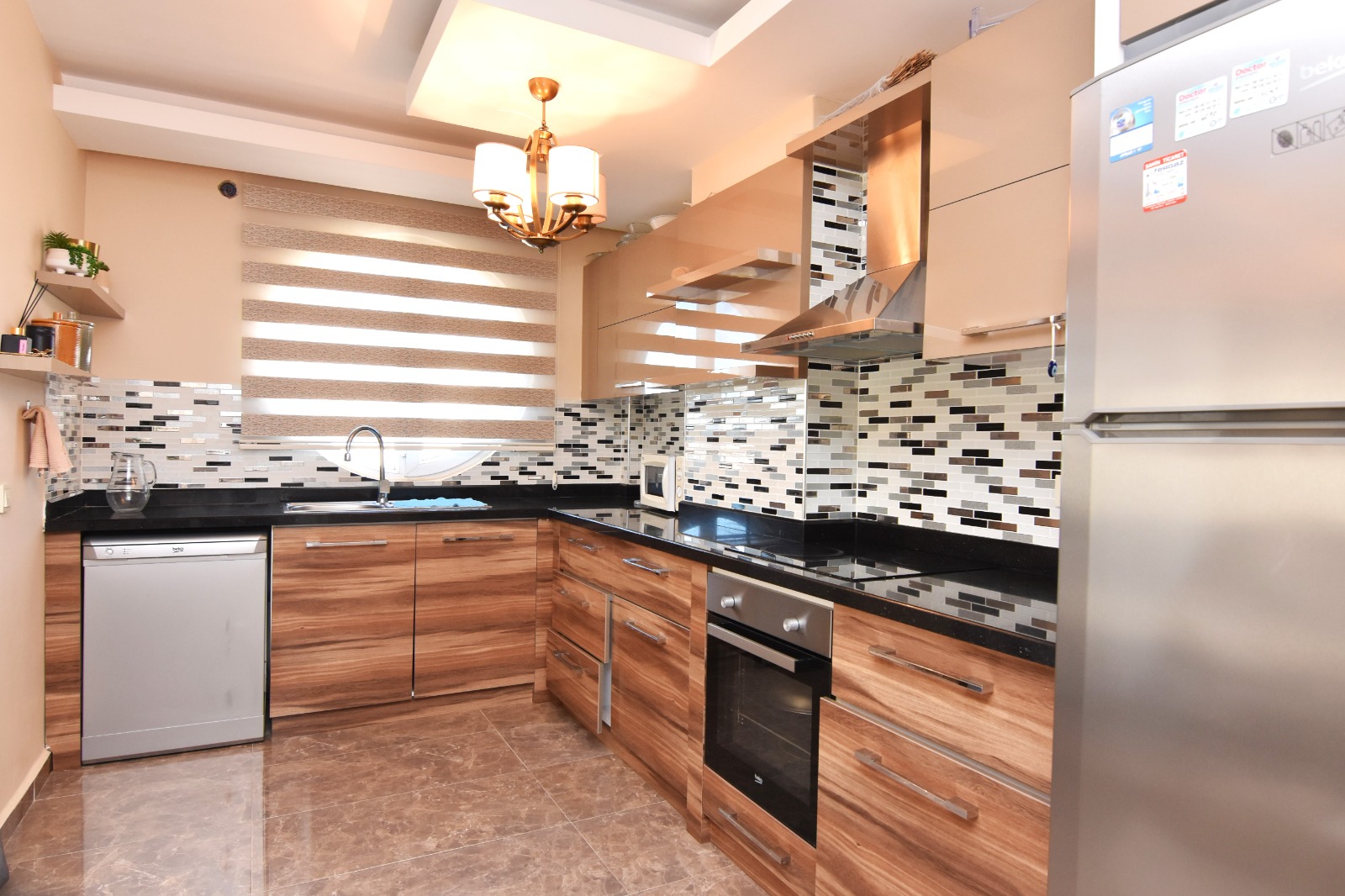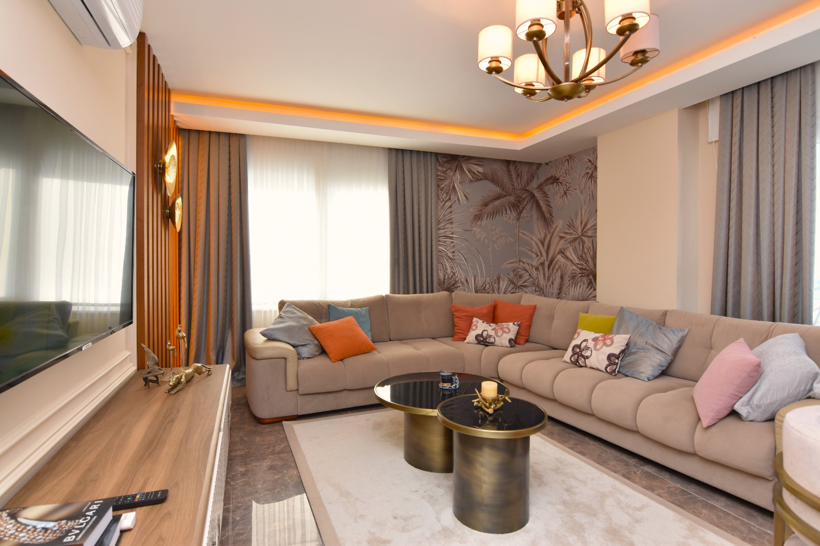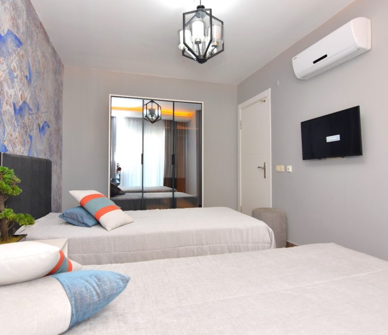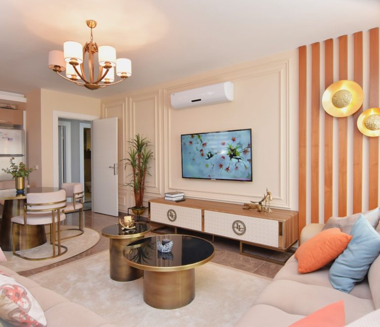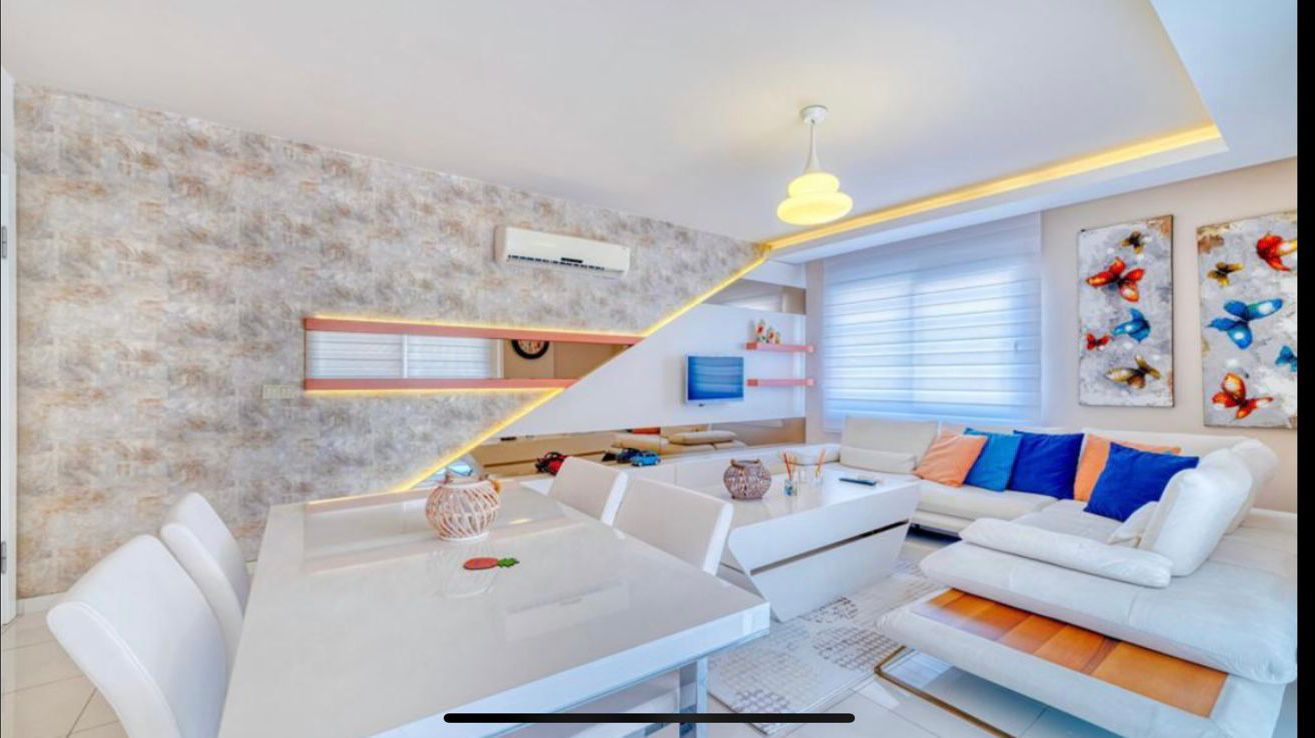Продается квартира 2+1 в новом современном комплексе Dolce Vita Residence. Квартира расположена на 9 этаже 12-этажного дома и состоит из двух спален, гостиной, совмещенной с кухней, двух санузлов и балконов.