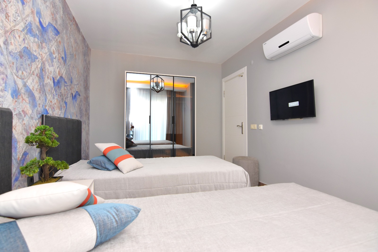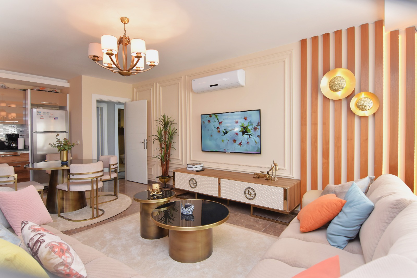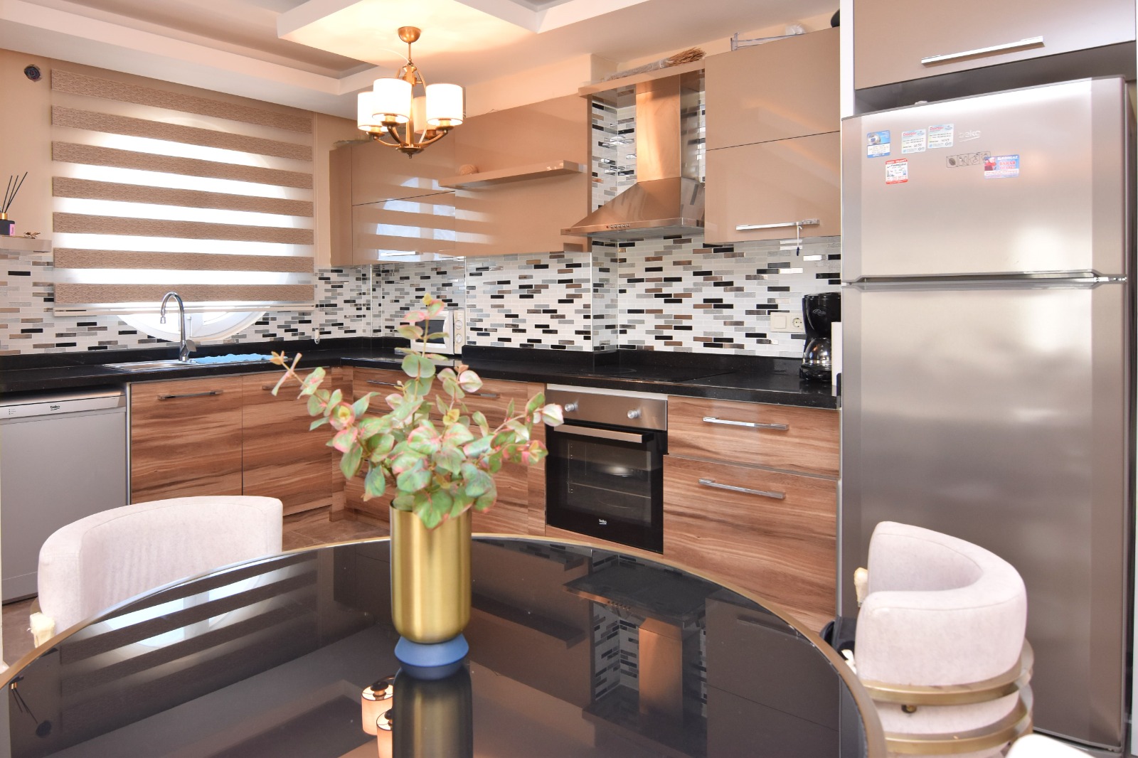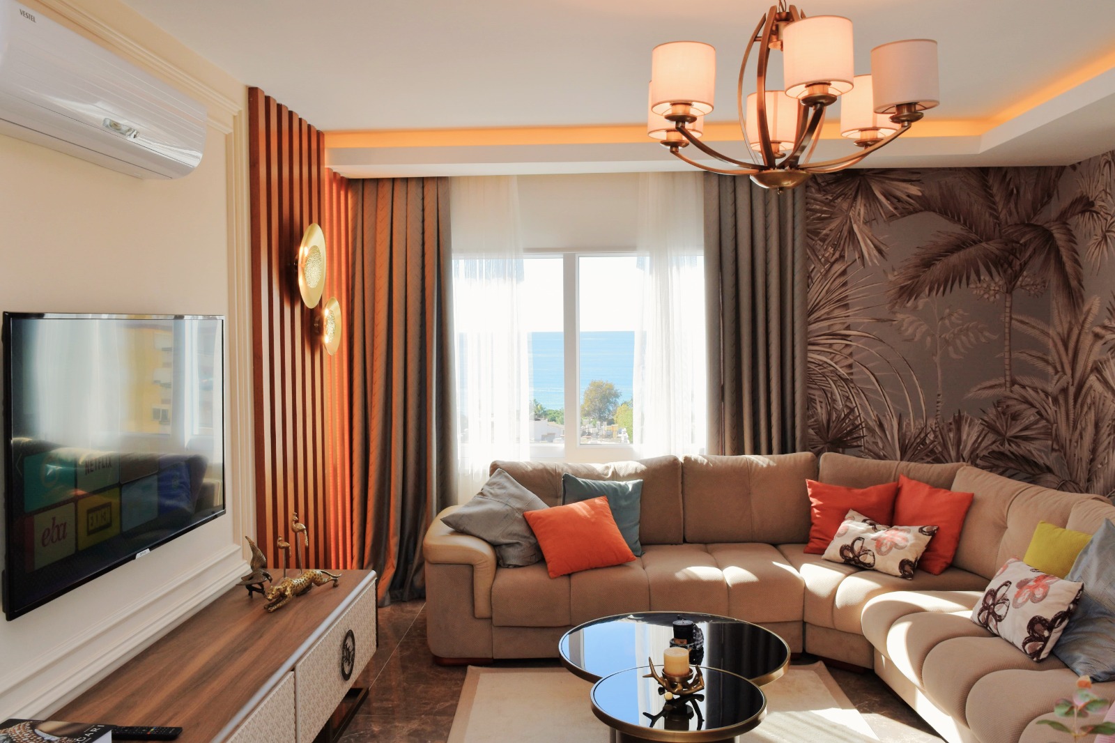 Продается квартира 2+1 в новом современном комплексе Dolce Vita Residence. Квартира расположена на 9 этаже 12-этажного дома и состоит из двух спален, гостиной, совмещенной с кухней, двух санузлов и балконов.