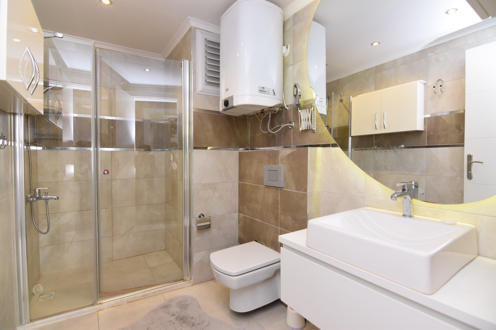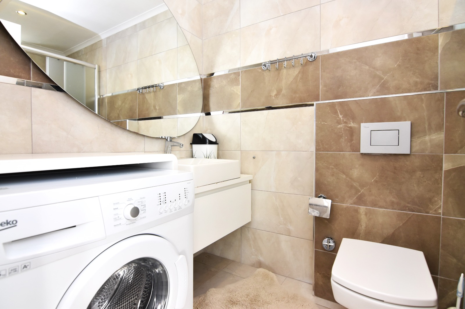 Поблизости проходит главная прогулочная улица города — Барбарос — с развлекательными заведениями и прекрасным шопингом. Прекрасная транспортная доступность до Алании (10 км) и районов побережья, остановка — рядом с домом.