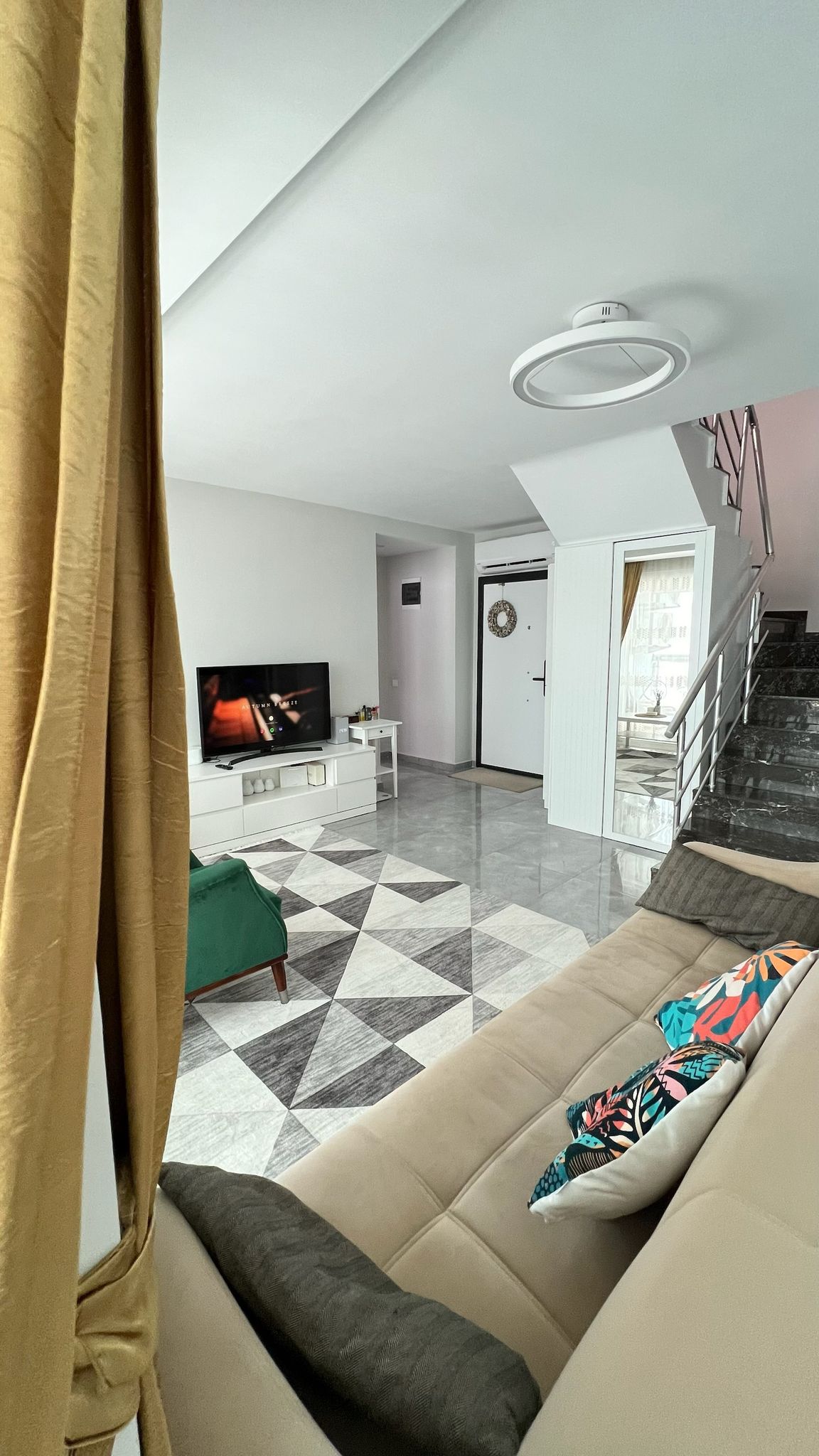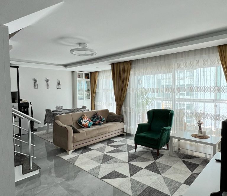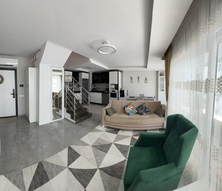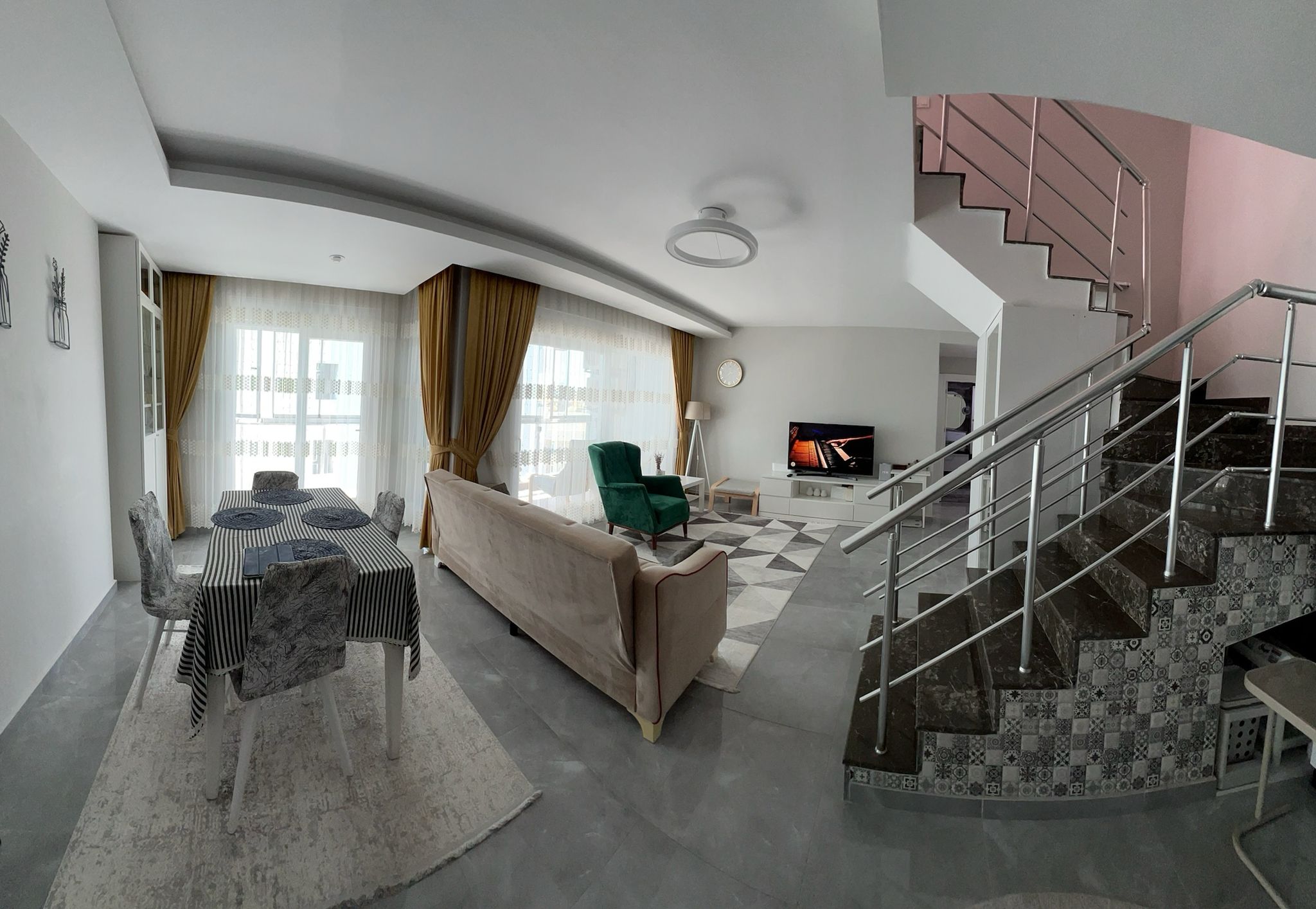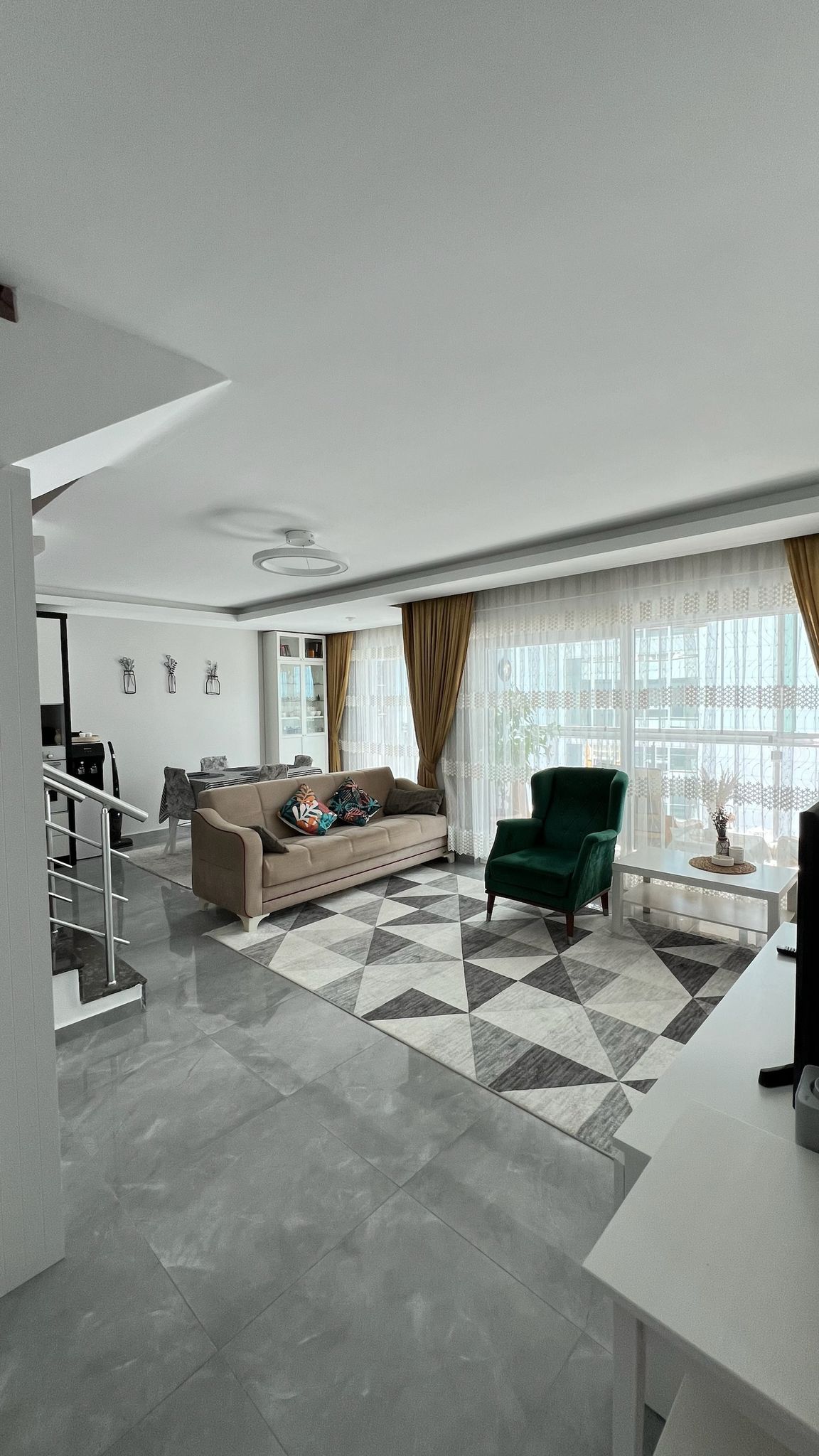 Продается двухуровневая квартира 3+1 в современном комплексе Gold Aura 3 Residence. Квартира расположена на последних этажах 12-этажного дома и состоит из трех спален, гостиной, совмещенной с кухней, двух санузлов, террасы и балкона.
