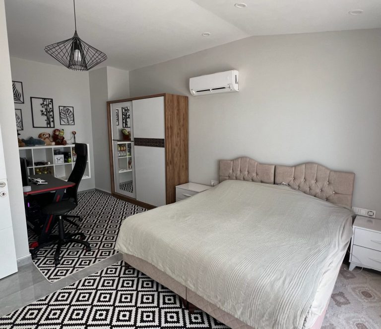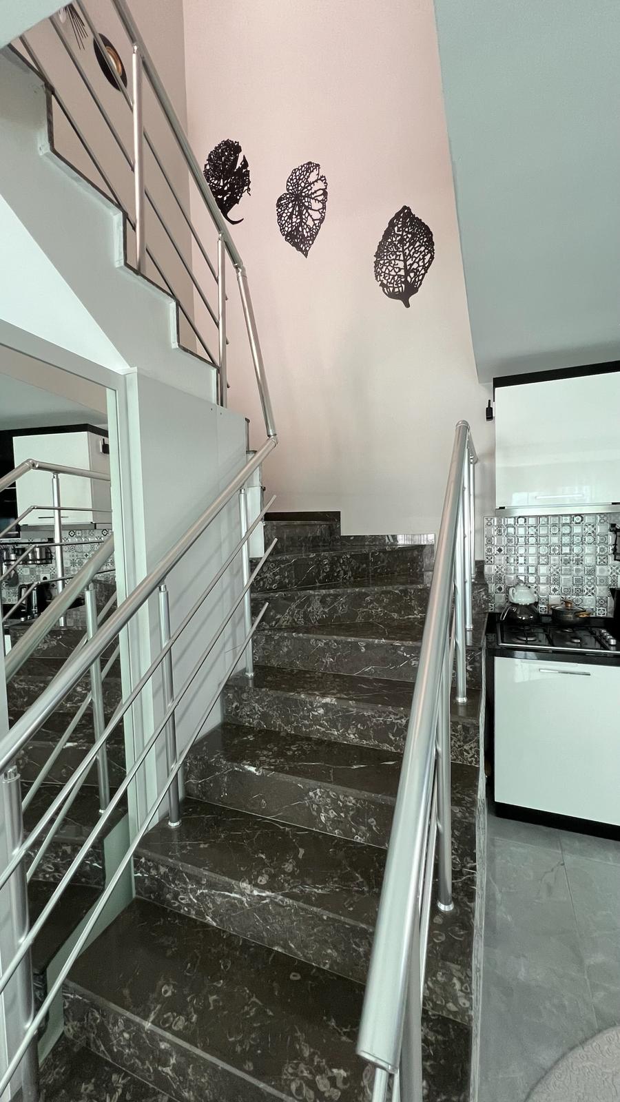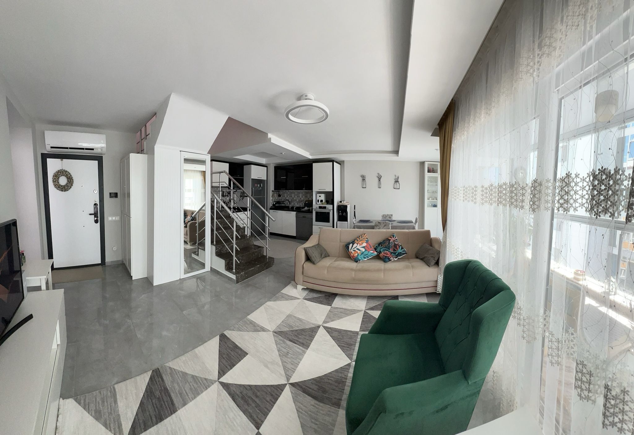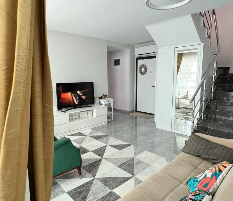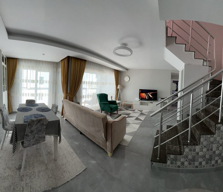Продается двухуровневая квартира 3+1 в современном комплексе Gold Aura 3 Residence. Квартира расположена на последних этажах 12-этажного дома и состоит из трех спален, гостиной, совмещенной с кухней, двух санузлов, террасы и балкона.