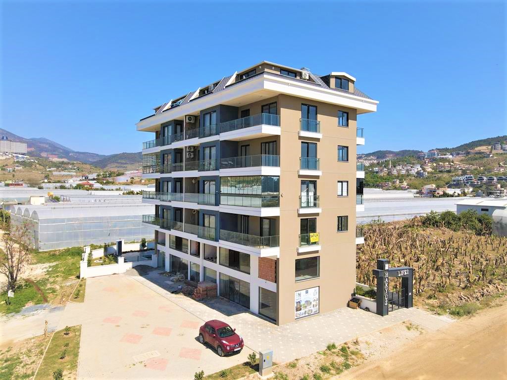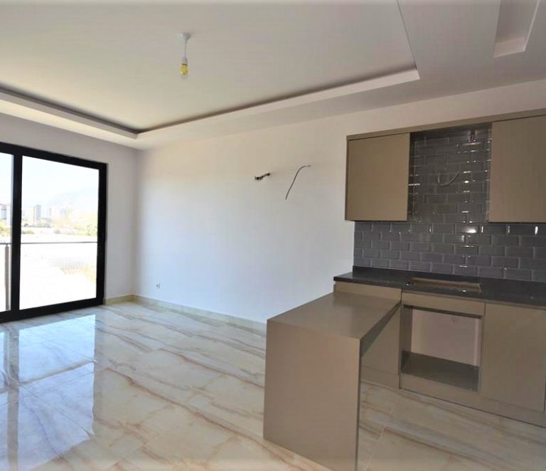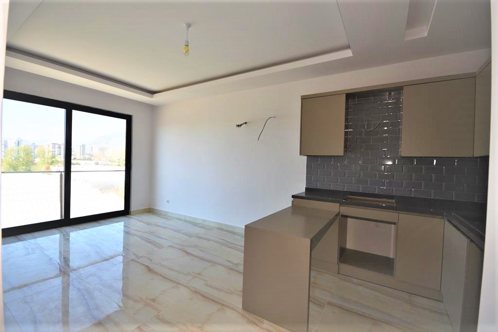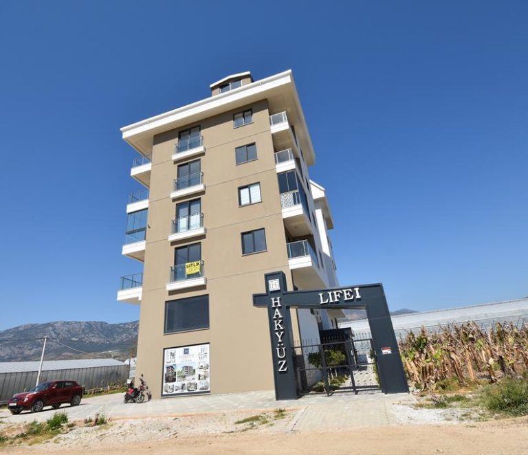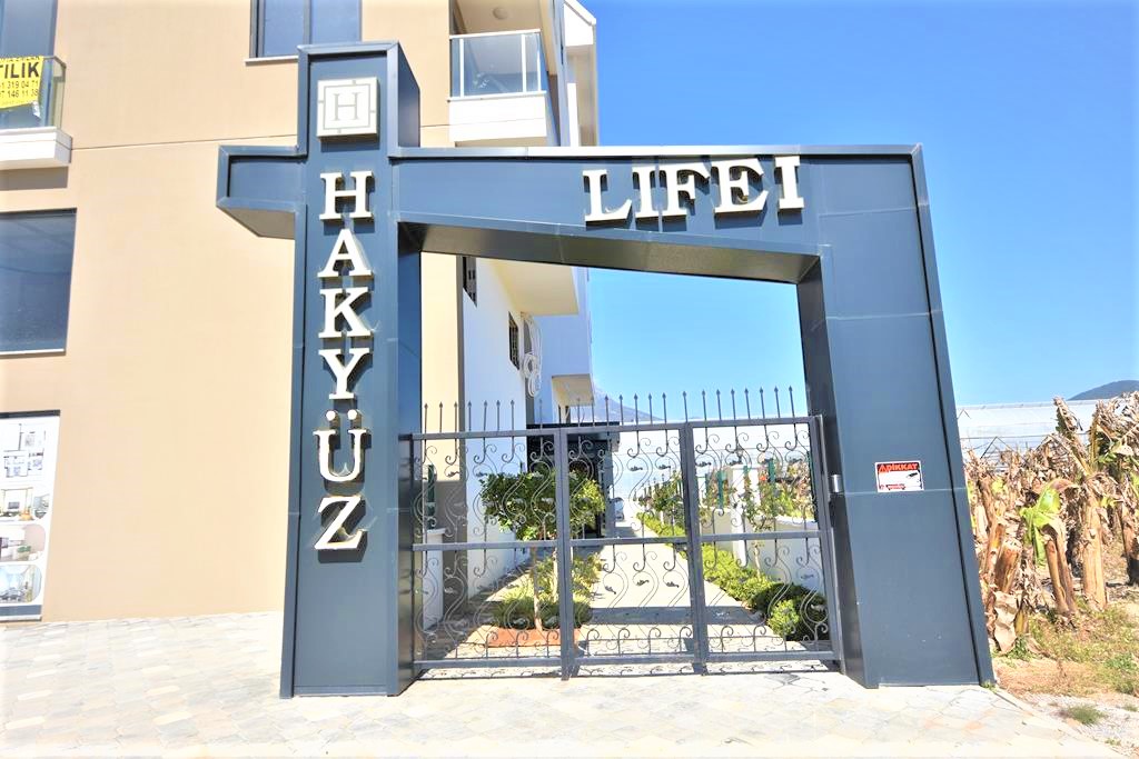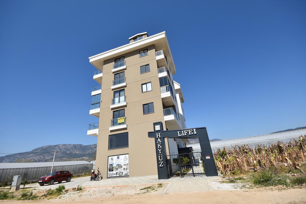 Продается квартира планировки 1+1 в новом жилом комплексе Hakyuz Life 1 в районе Каргыджак, пригорода Алании. Квартира расположена на 3 этаже 5-этажного дома и состоит из гостиной американского типа, спальни, санузла и балкона. Общая площадь квартиры — 60 м2.
