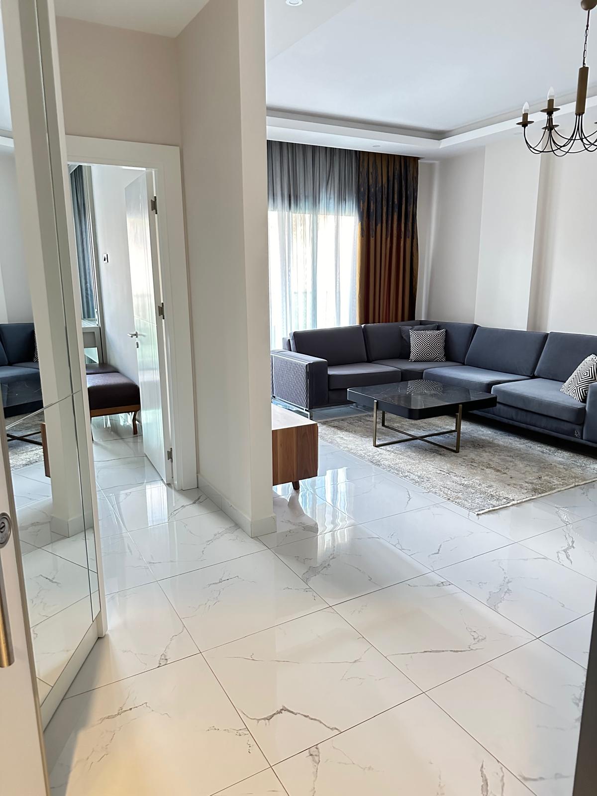 Продается квартира 1+1 в новом современном комплексе Konak Seaside Premium. Квартира расположена на 3 этаже 7-этажного дома и состоит из одной спальни, гостиной, совмещенной с кухней, санузла и балкона. Общая площадь квартиры- 68 м2.