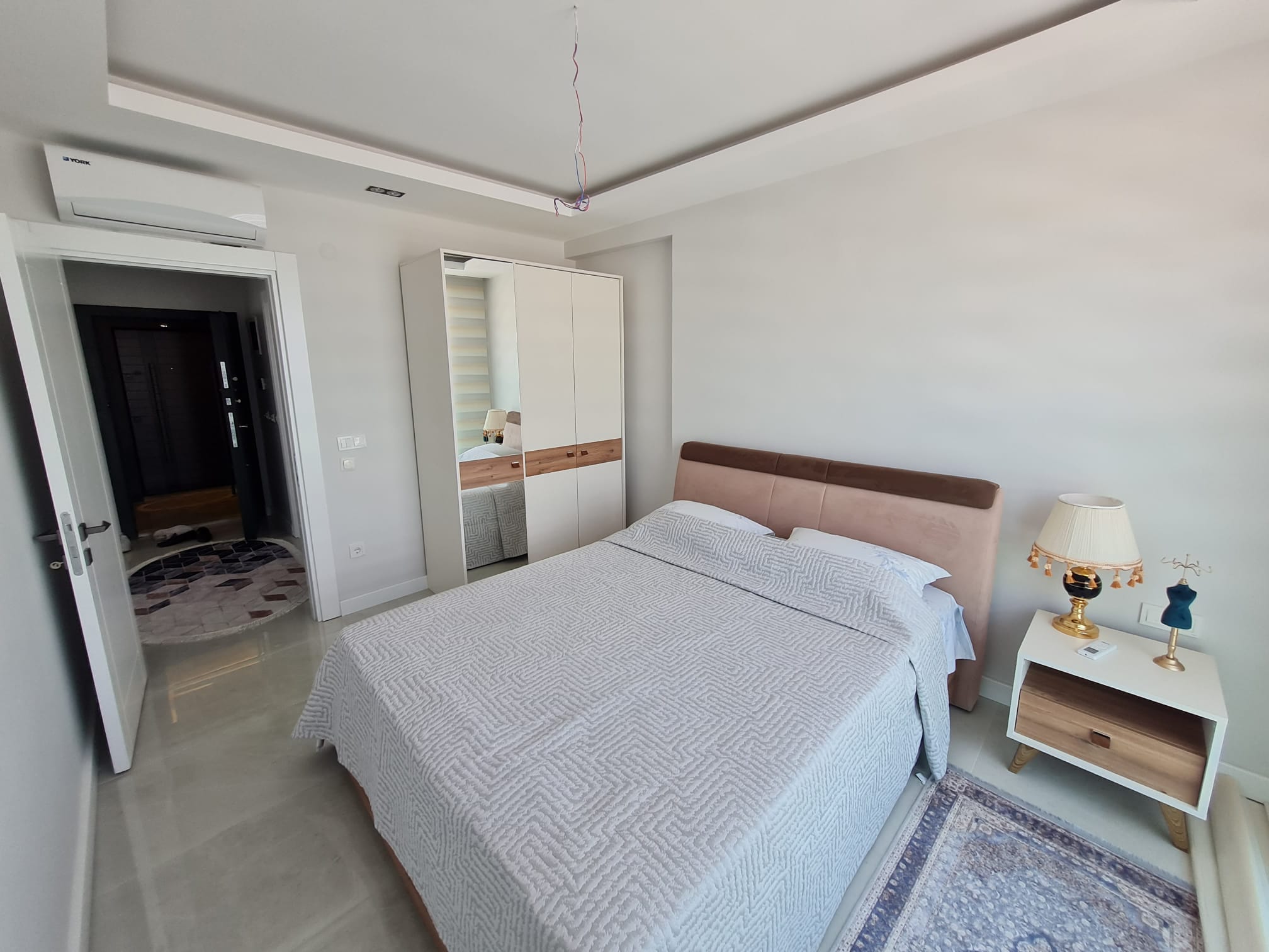 Продается квартира планировки 2+1 в новом современном комплексе Sunset Aqua в районе Махмутлар, расположенном в 13 км от центра Алании. Квартира расположена на 10 этаже 12-этажного дома и состоит из гостиной американского типа, двух спален, двух санузлов и балкона.