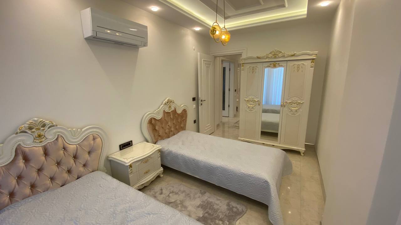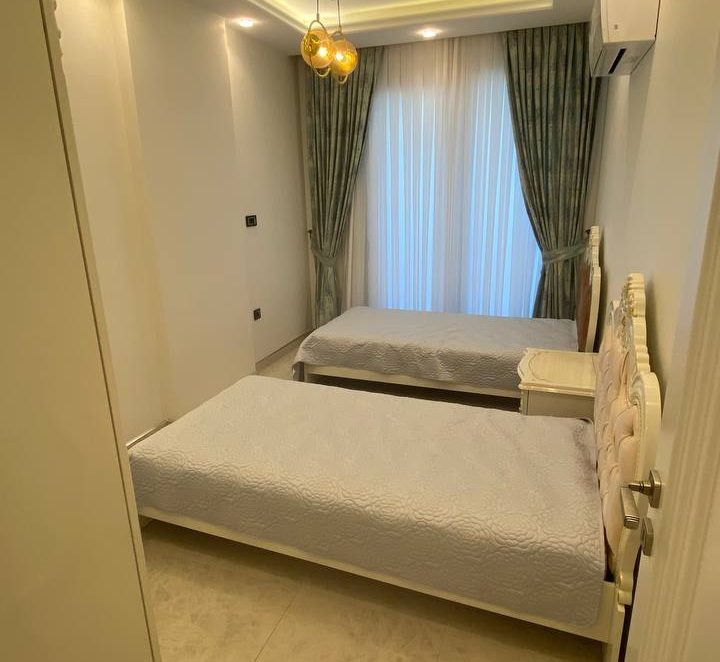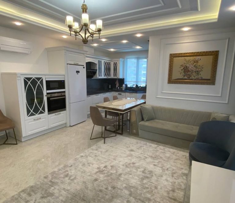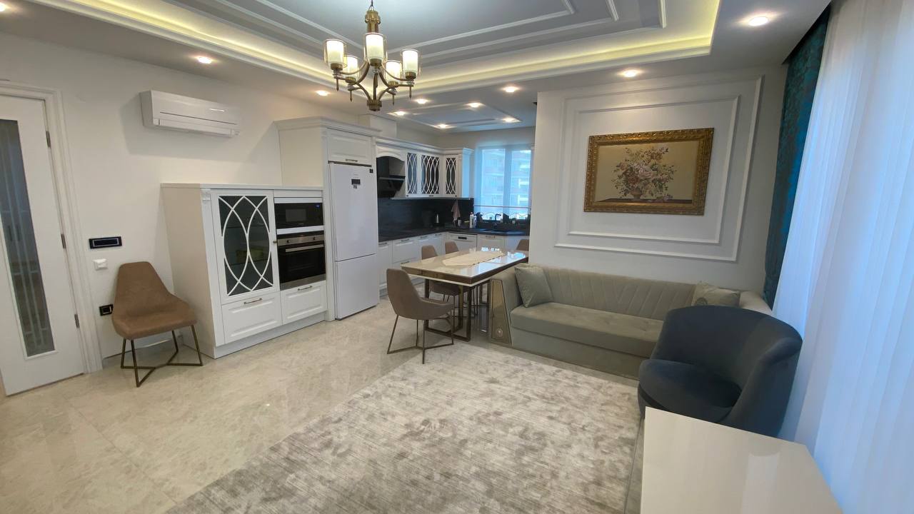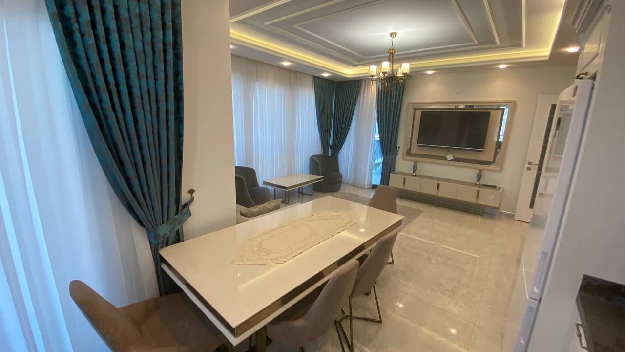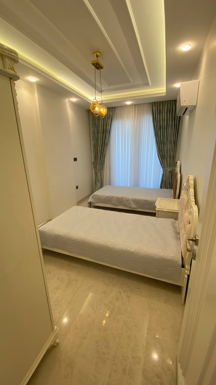 Продается квартира 2+1 в новом современном комплексе Yenisey Palace в районе Махмутлар, расположенном в 10 км от центра Алании. Квартира расположена на 6 этаже 11- этажного дома и состоит из гостиной американского типа, двух спален, двух санузлов и балкона. Общая площадь квартиры- 100 м2.