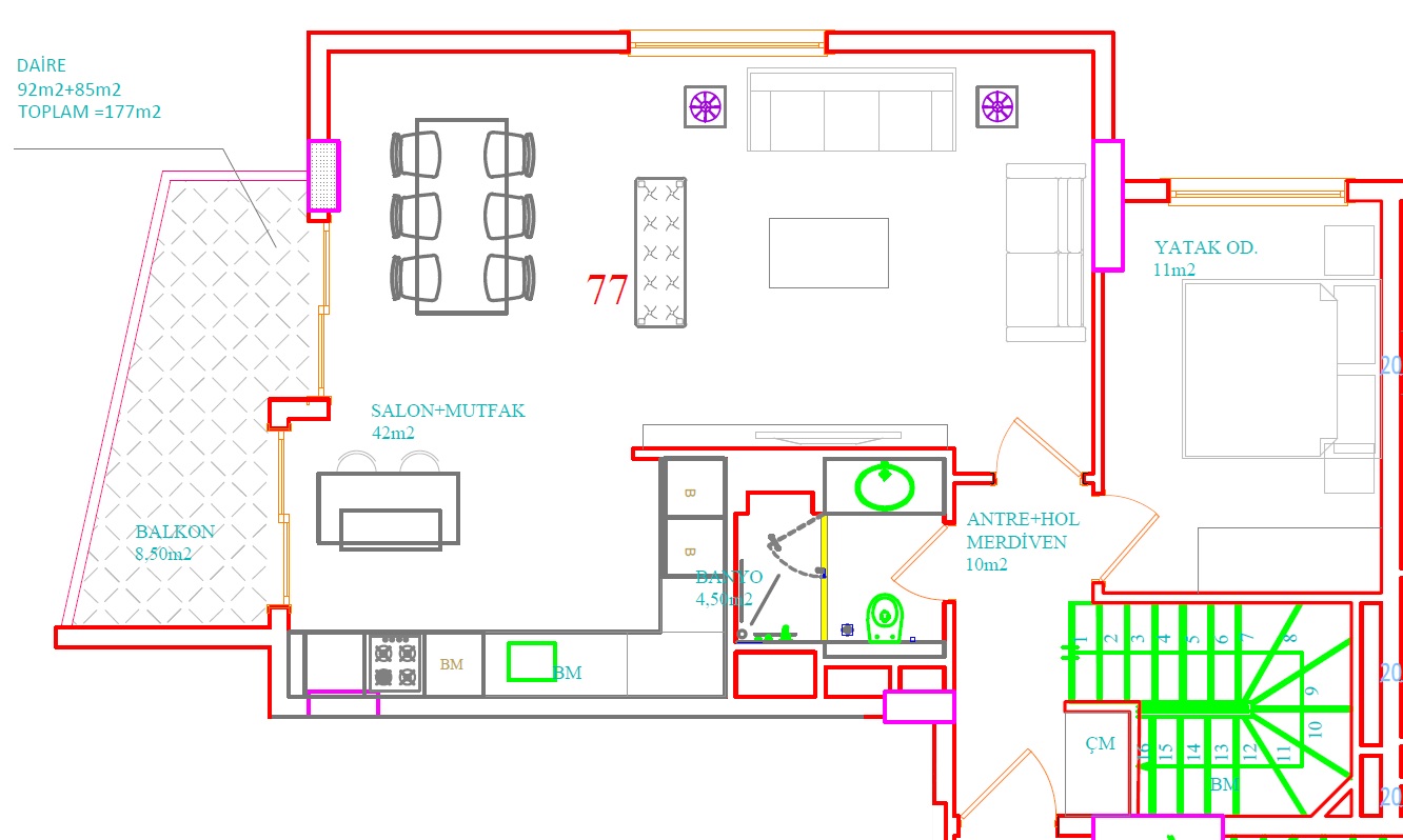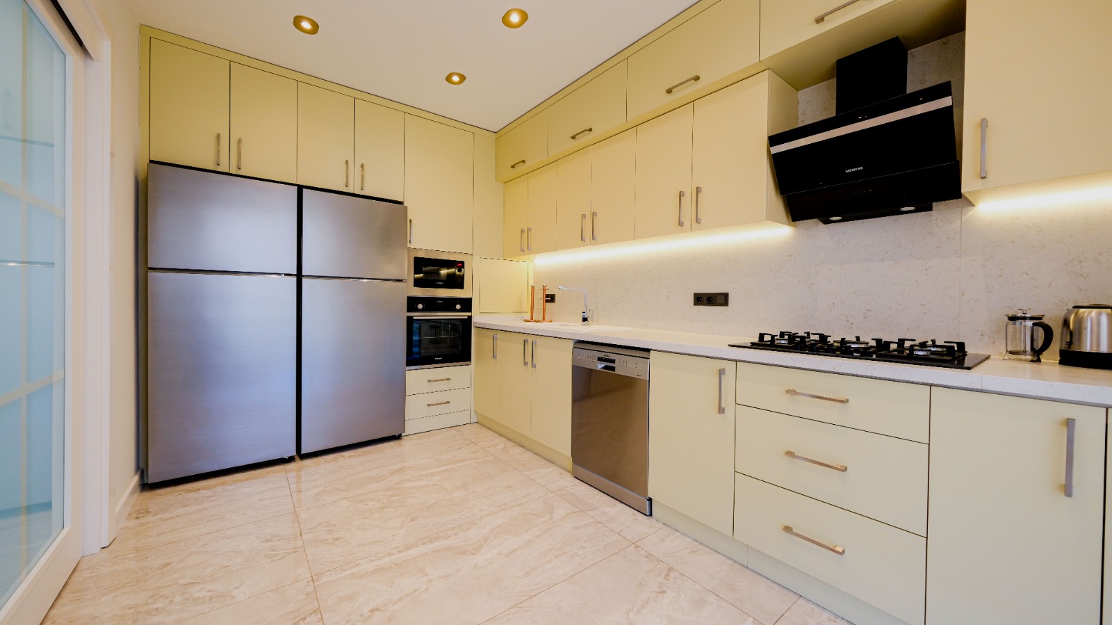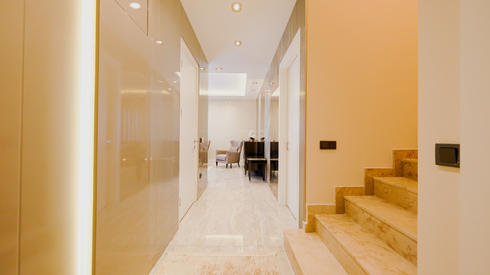 Продается двухуровневая квартира планировки 3+1 в новом жилом комплексе Best Home 35 Aria в самом центре Алании. Квартира расположена на последних этажах 9-этажного дома и состоит из коридора, гостиной с кухней, 3 спален, 3 санузлов, подсобного помещения, террас и балкона. Площадь квартиры — 177 м2.
