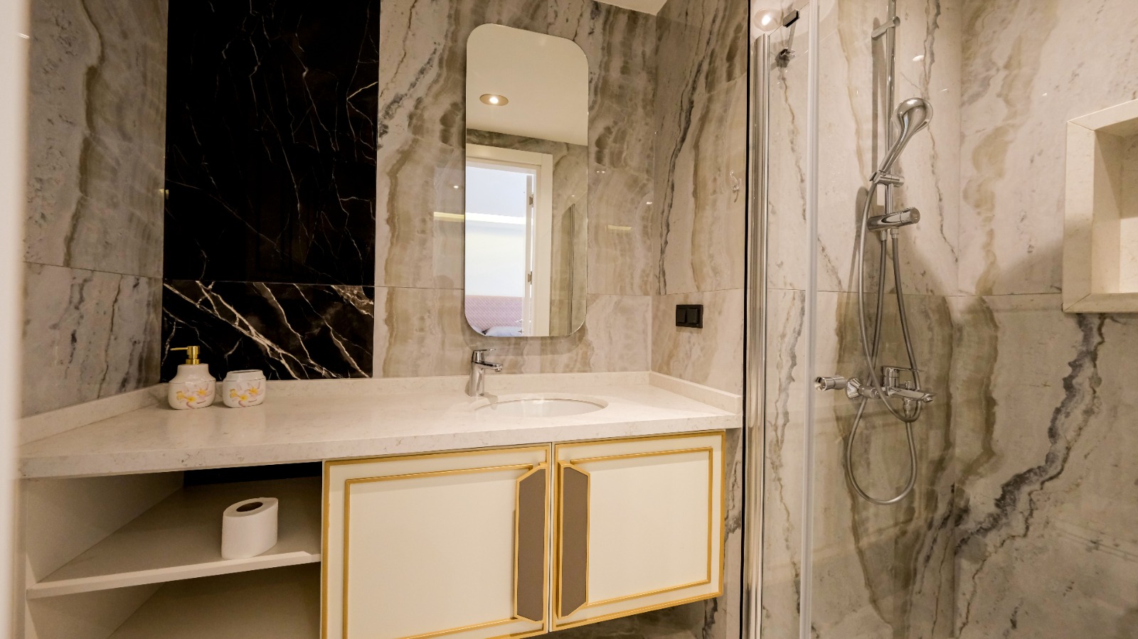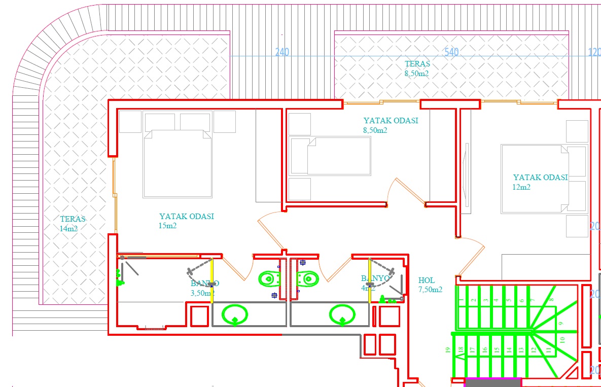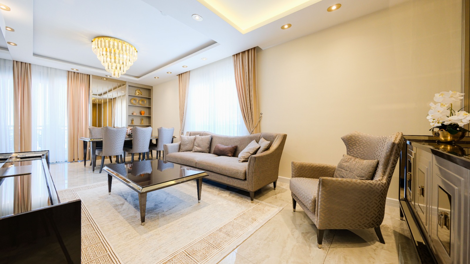 Продается двухуровневая квартира планировки 3+1 в новом жилом комплексе Best Home 35 Aria в самом центре Алании. Квартира расположена на последних этажах 9-этажного дома и состоит из коридора, гостиной с кухней, 3 спален, 3 санузлов, подсобного помещения, террас и балкона. Площадь квартиры — 177 м2.