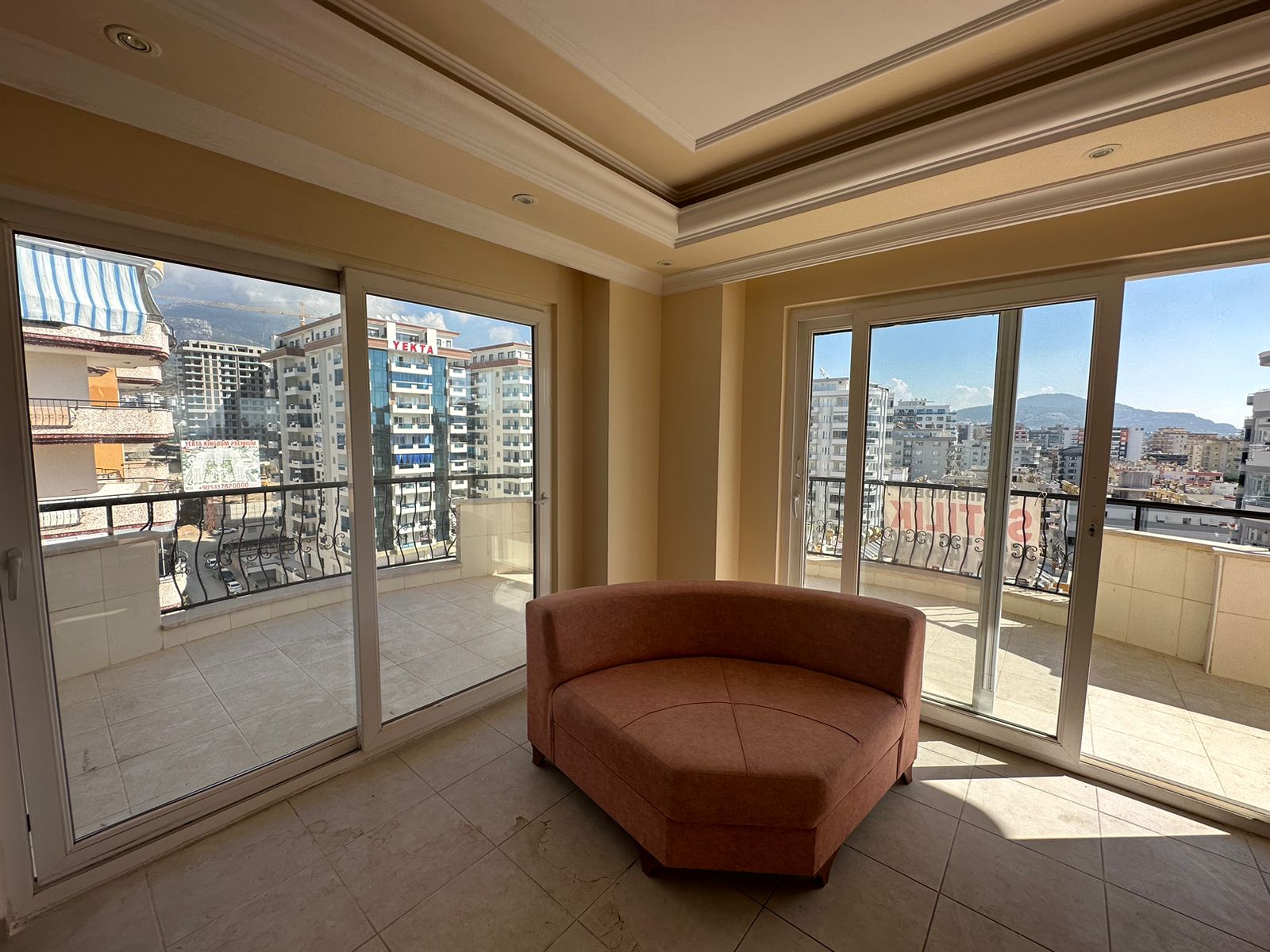 Продается двухуровневая квартира 4+1 в современном комплексе Flamingo-1 в районе Махмутлар, расположенном в 12 км от центра Алании. Квартира расположена на последних этажах 11-этажного дома и состоит из гостиной американского типа, 4 спален, 4 санузлов, террасы и 3 балконов. Общая площадь квартиры — 250 м2.