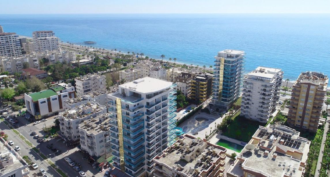 Комплекс расположен в популярном районе Махмутлар в Аланье. Апартаменты находятся прямо у моря, что гарантирует легкий доступ к пляжу и прекрасные морские виды.