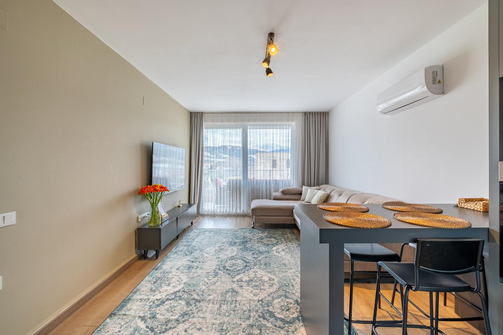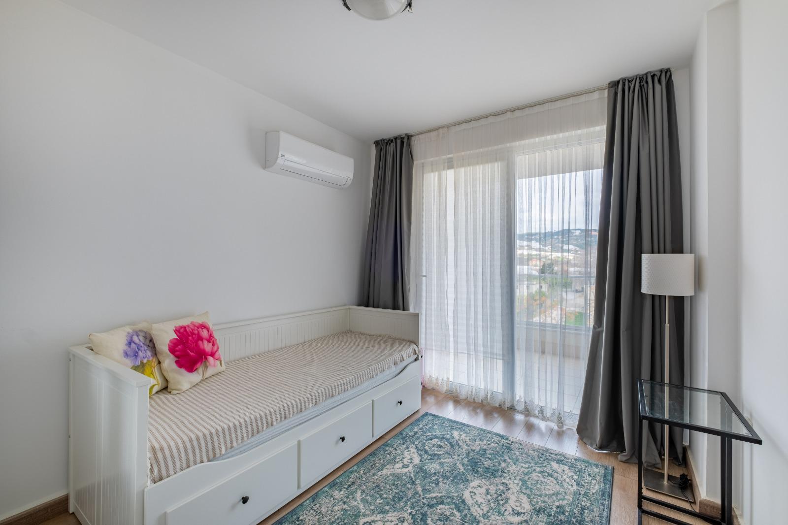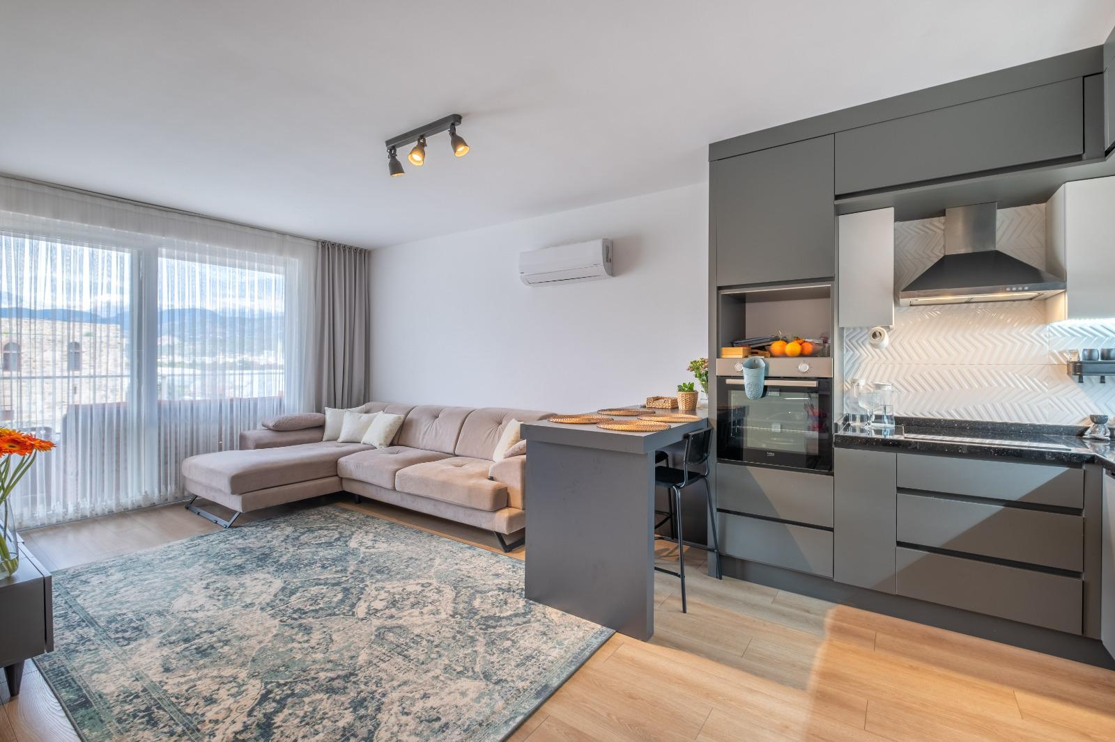 Апартаменты площадью 118 м² имеют планировку 2+1, что подразумевает две спальни, гостиную и отдельную кухню. Объект полностью меблирован и готов к заселению. Отделка выполнена с использованием качественных материалов, создающих атмосферу современного комфорта.