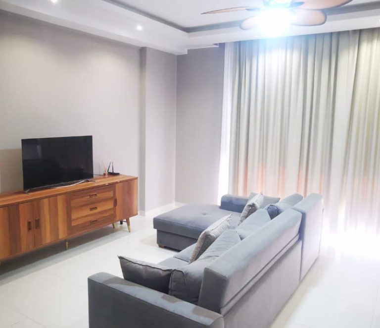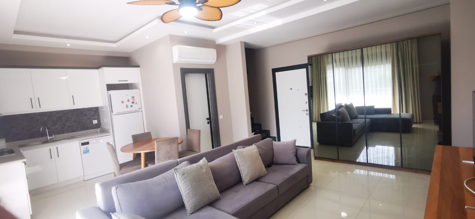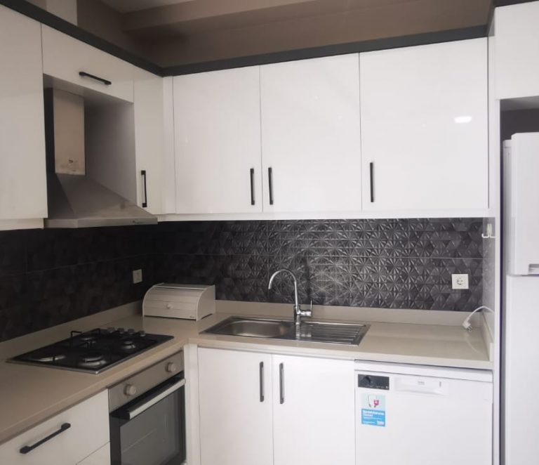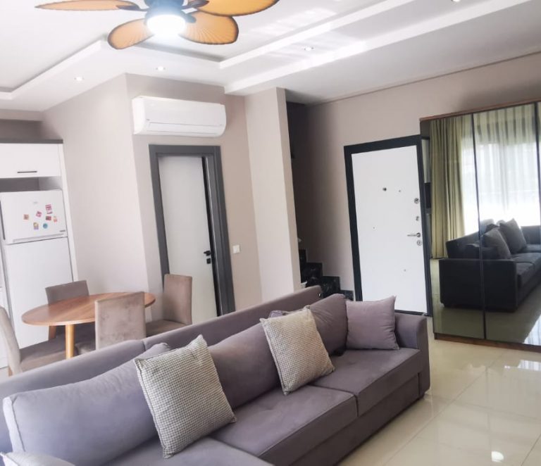 Дуплекс площадью 130 м² с планировкой 2+1. На первом этаже расположены просторная гостиная, кухня, санузел и выход в собственный сад. На втором этаже — две спальни и второй санузел. Квартира готова к заселению, возможна индивидуальная отделка под ключ.