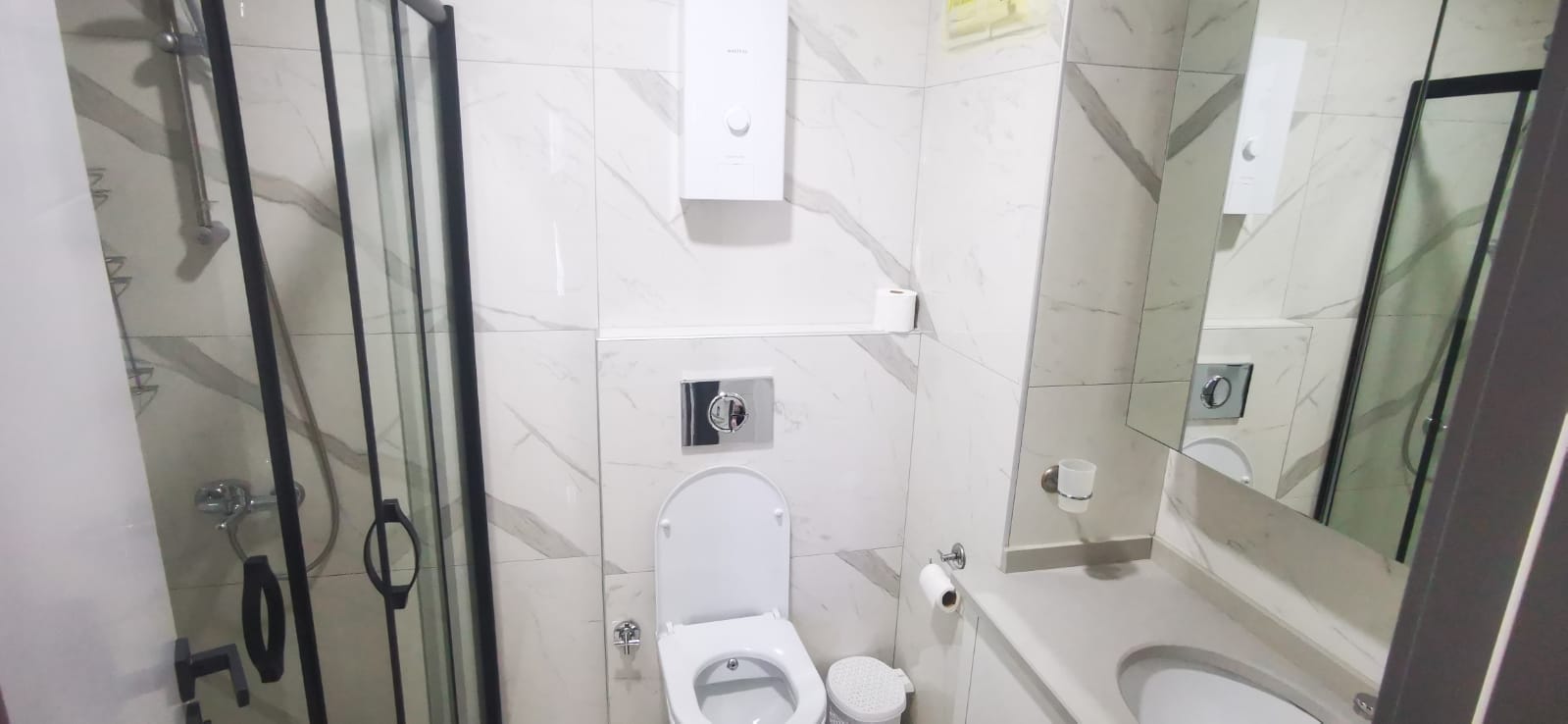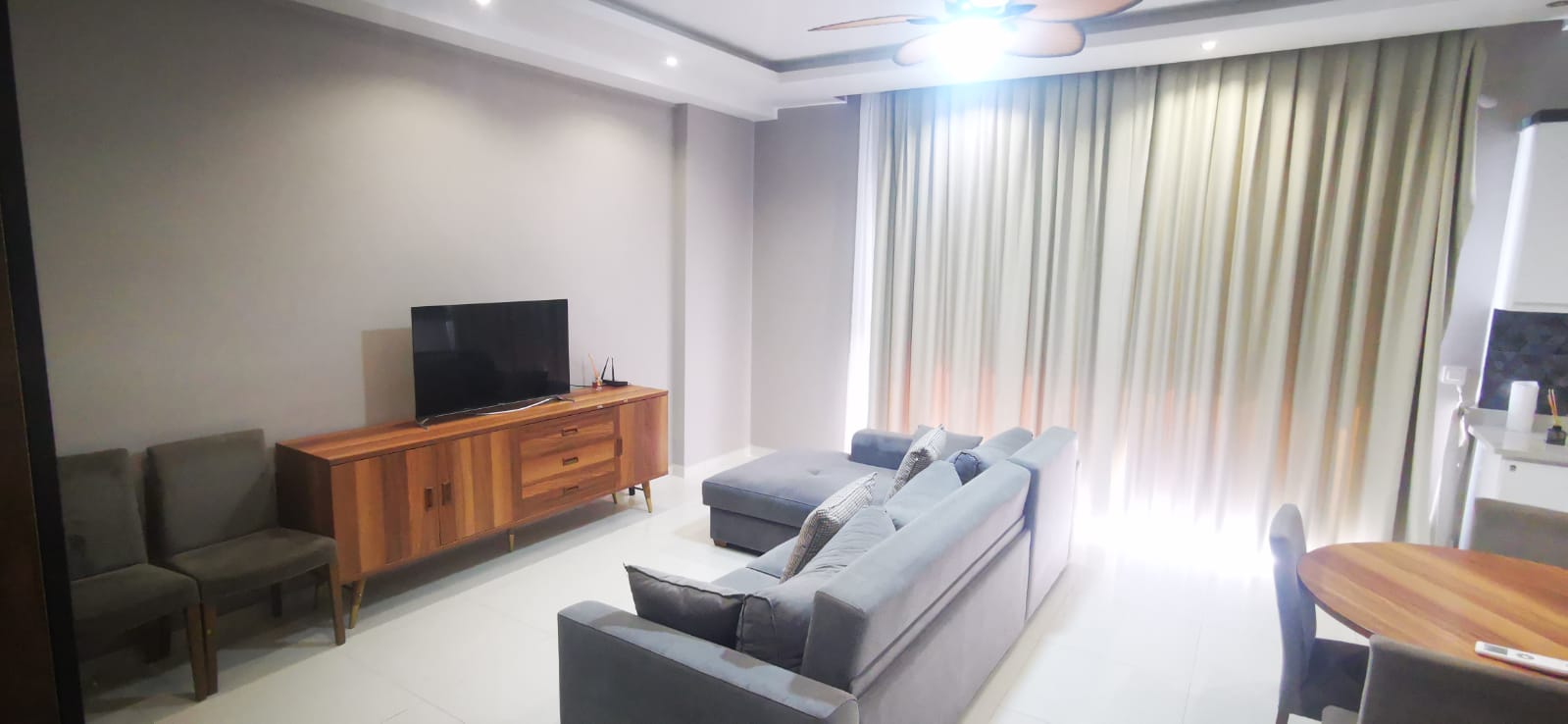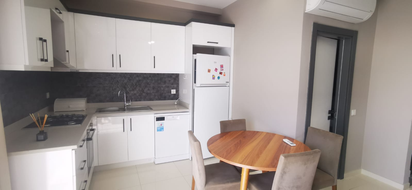 Дуплекс площадью 130 м² с планировкой 2+1. На первом этаже расположены просторная гостиная, кухня, санузел и выход в собственный сад. На втором этаже — две спальни и второй санузел. Квартира готова к заселению, возможна индивидуальная отделка под ключ.