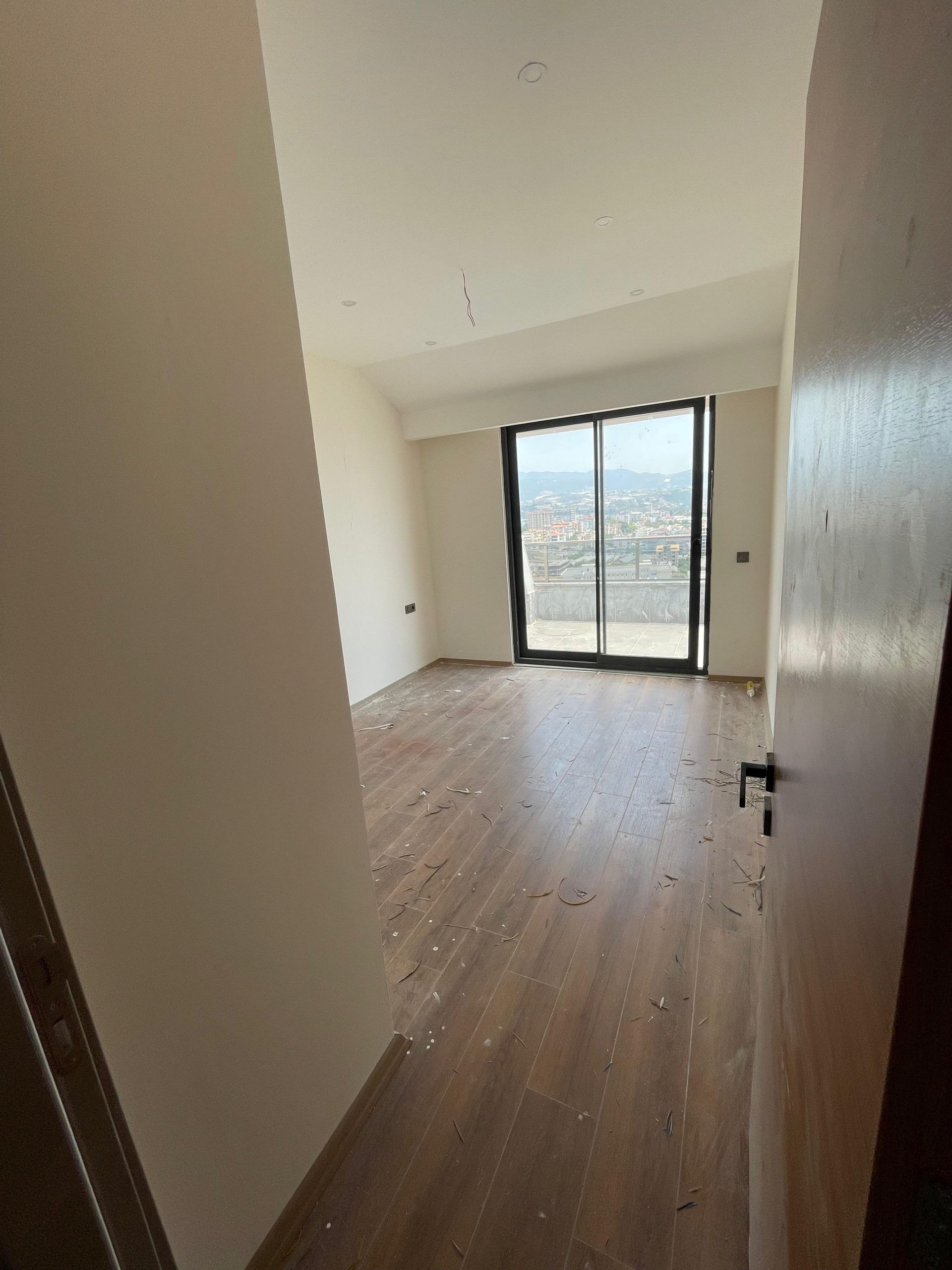 Апартаменты площадью 110 м² расположены на 9 этаже. Дуплексная планировка создает ощущение простора и приватности. Квартира выполнена в современном стиле, готова к заселению. Большие панорамные окна открывают захватывающие виды на море.