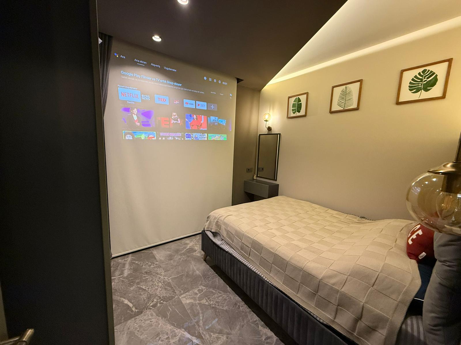 В комплектацию входит: встроенная кухня · бытовая техника · дизайнерское освещение · теплые полы · шкафы и системы хранения · проектор в спальне · стильный современный интерьер · продуманная эргономика пространства.