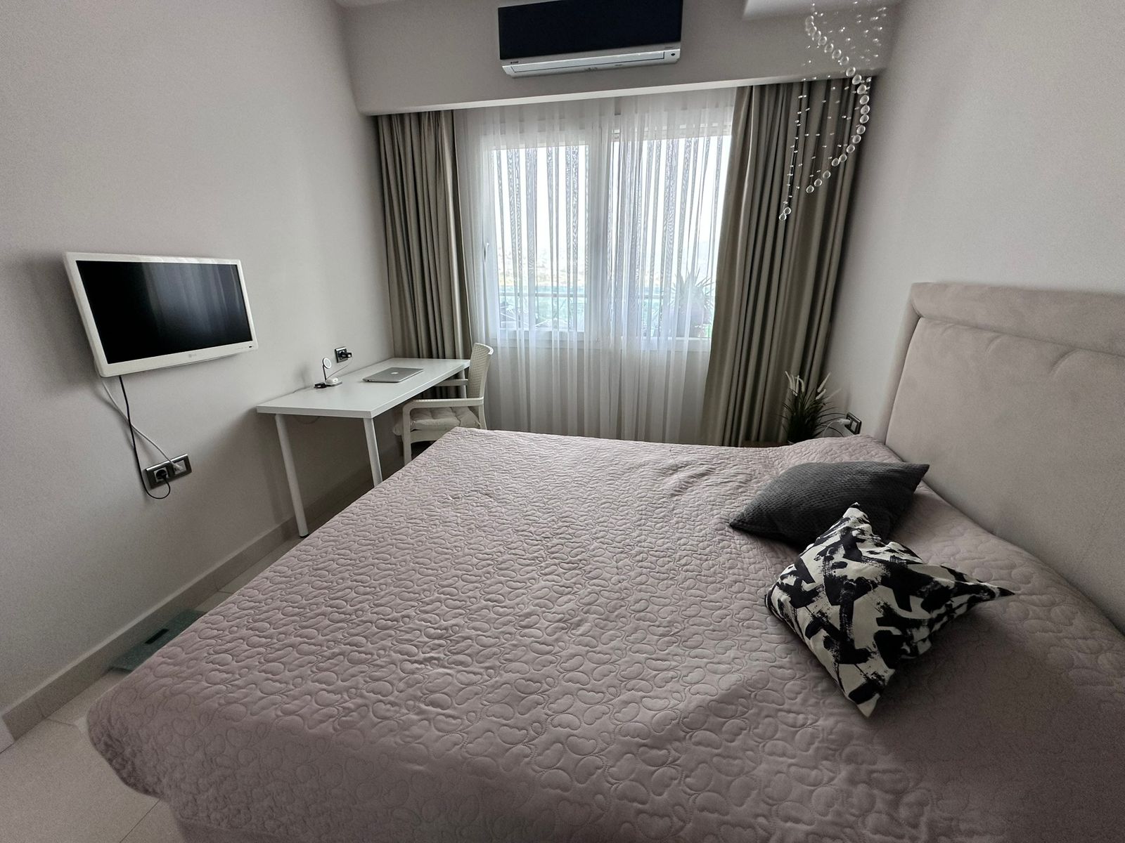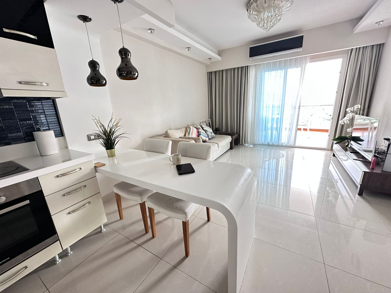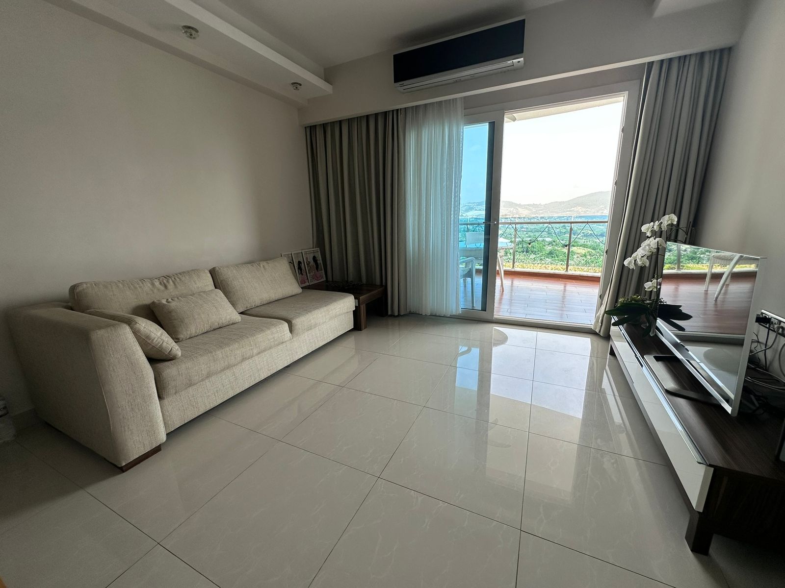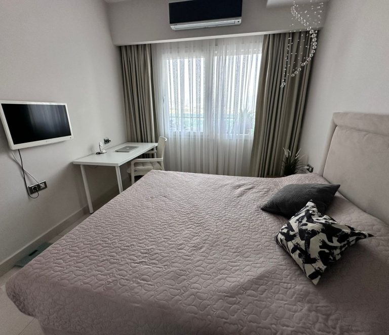 Квартира площадью 75 м² расположена на 11 этаже, что гарантирует прекрасный панорамный вид и обилие естественного света. Просторная гостиная совмещена с кухней, есть отдельная спальня и санузел. Помещение выполнено с качественной чистовой отделкой, готова к заселению. Большие панорамные окна открывают живописные виды на море, горный ландшафт и город.
