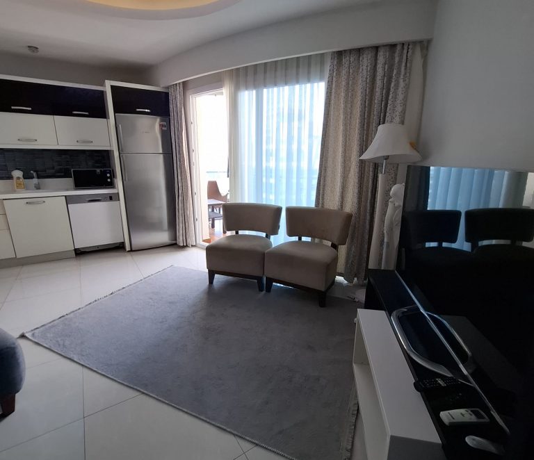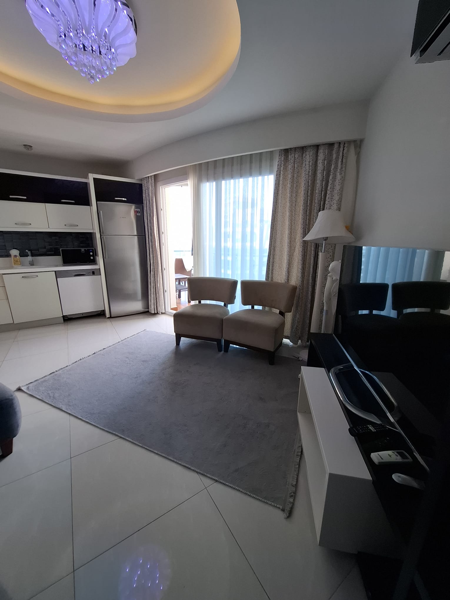 Просторная квартира 1+1 с панорамным видом на море, город и бассейн на 12 этаже. Идеальный вариант для инвестиций или жизни на побережье Средиземного моря.