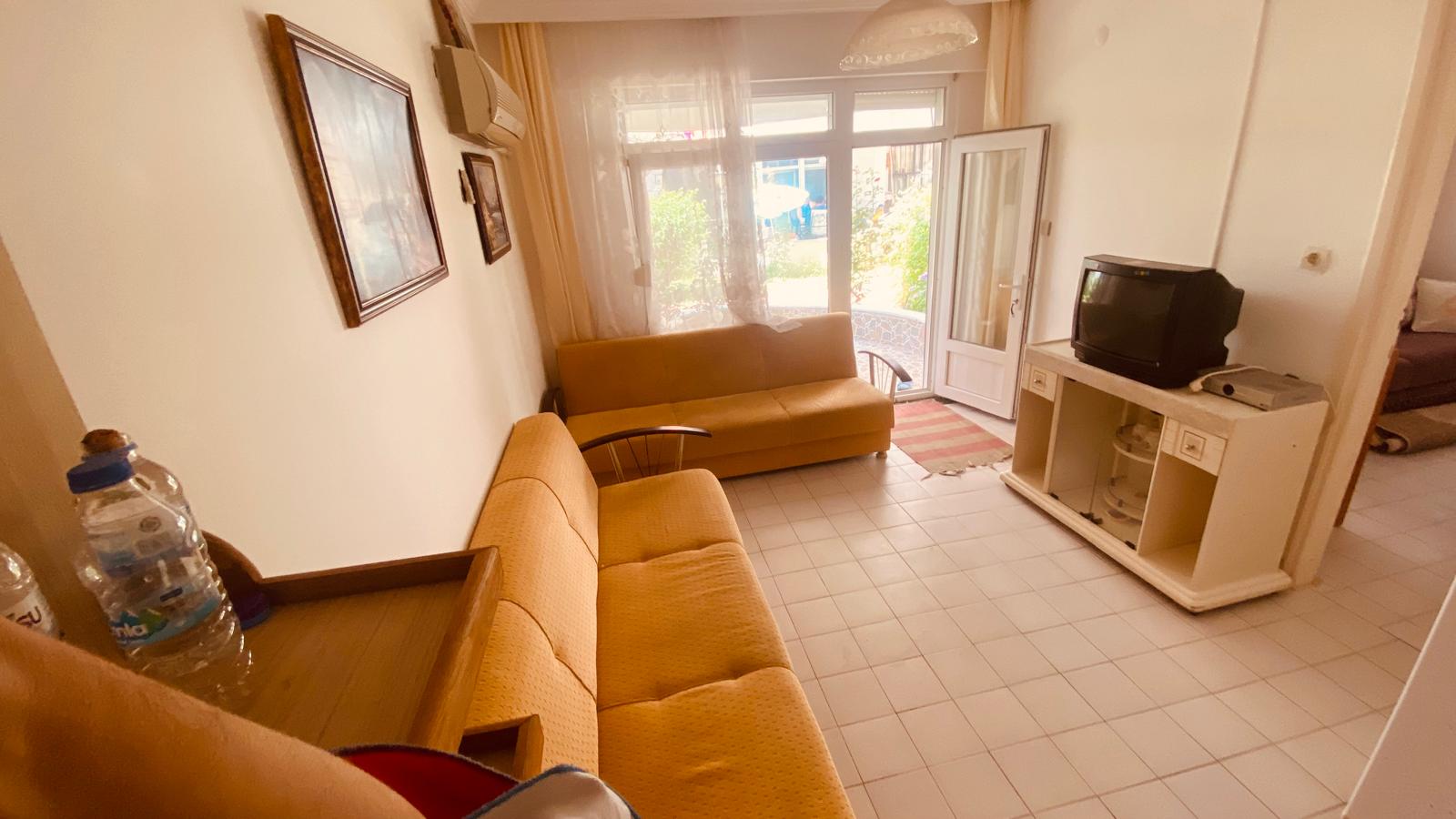 Просторная квартира 1+1 на первом этаже с собственным садом в закрытом комплексе полной инфраструктуры. Идеальный вариант для инвестиций, получения ВНЖ или отдыха у моря.
