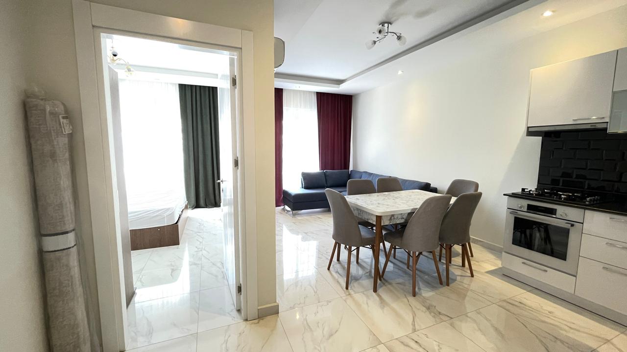 Апартаменты площадью 65 м² с планировкой 1+1 расположены на 3 этаже. Квартира полностью меблирована и готова к заселению. Просторная гостиная, отдельная кухня, уютная спальня и современный санузел.