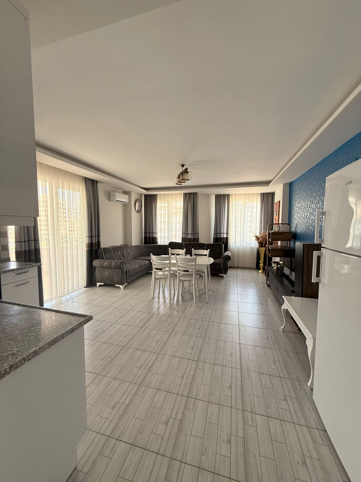 Квартира на 3 этаже площадью 90 м² имеет практичную планировку 1+1, два балкона и два санузла. Объект продается полностью меблированным и готовым к заселению. Благодаря площади и планировке, квартиру можно переоборудовать в формат 2+1, что увеличит её рыночную стоимость и потенциал для сдачи в аренду.