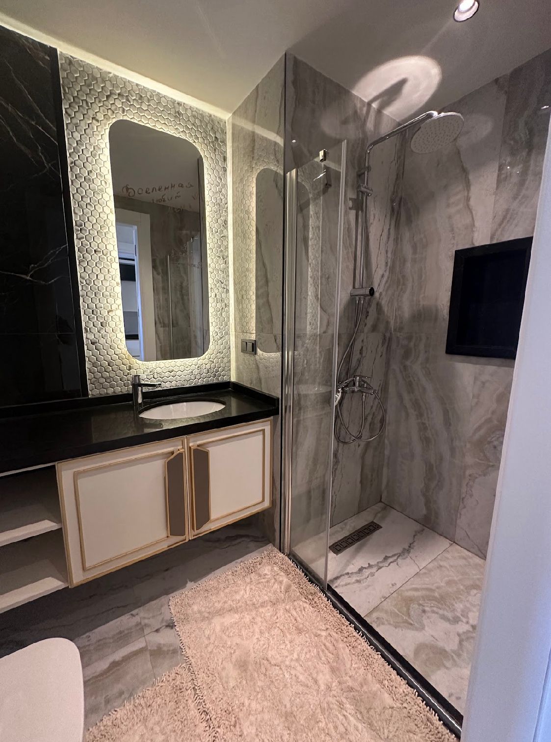 Квартира предлагается с мебелью и бытовой техникой, полностью готова к проживанию. Интерьер выполнен в современном минималистичном стиле с качественными материалами отделки, подогревом пола в ванной и кондиционерами в каждой комнате.