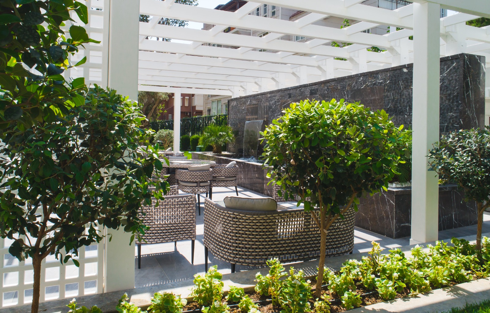 Комплекс предлагает полную инфраструктуру для комфортной жизни и отдыха: собственный аквапарк, несколько бассейнов, спа-зона, кинотеатр, детские комнаты и закрытый гараж.