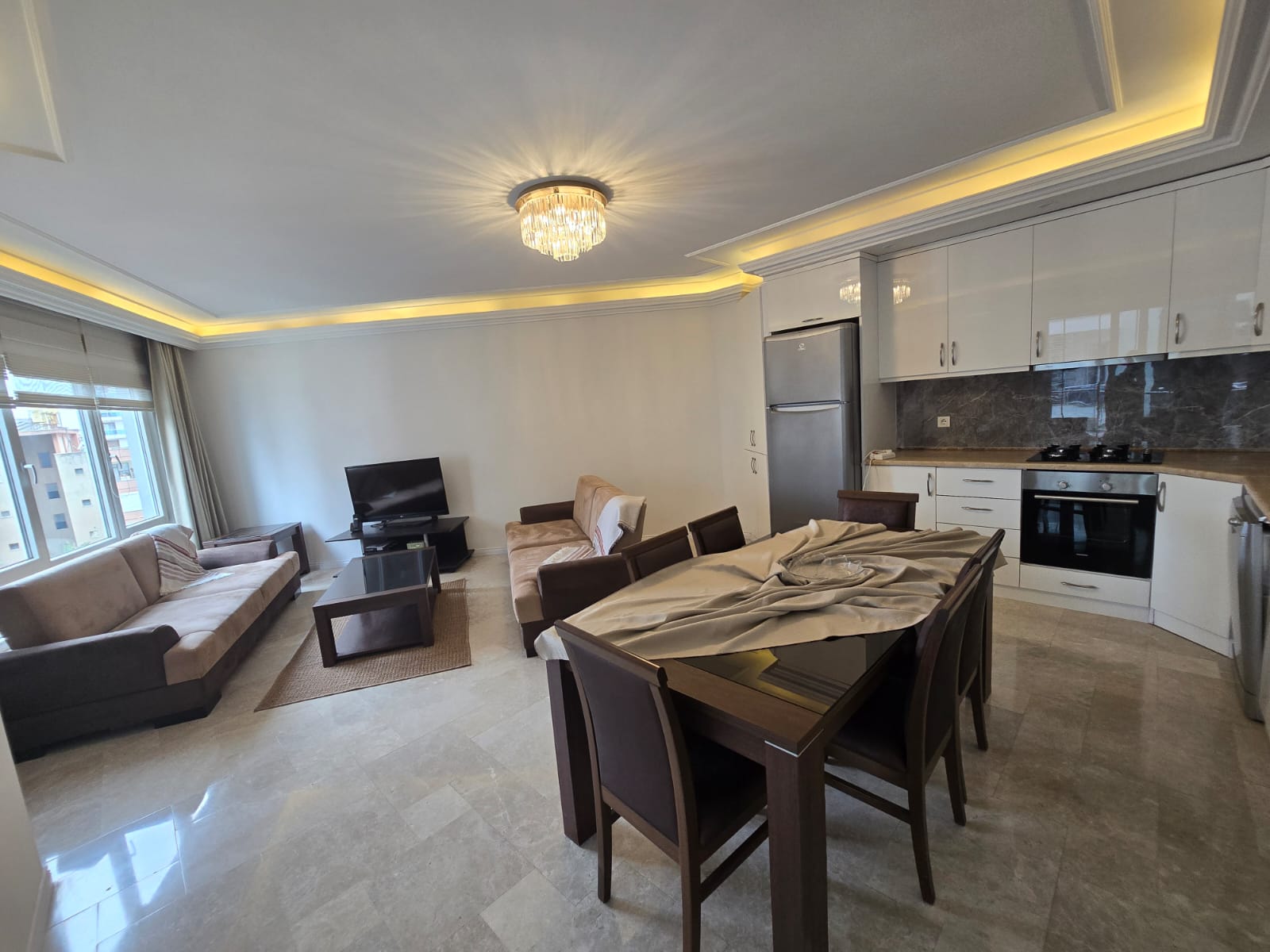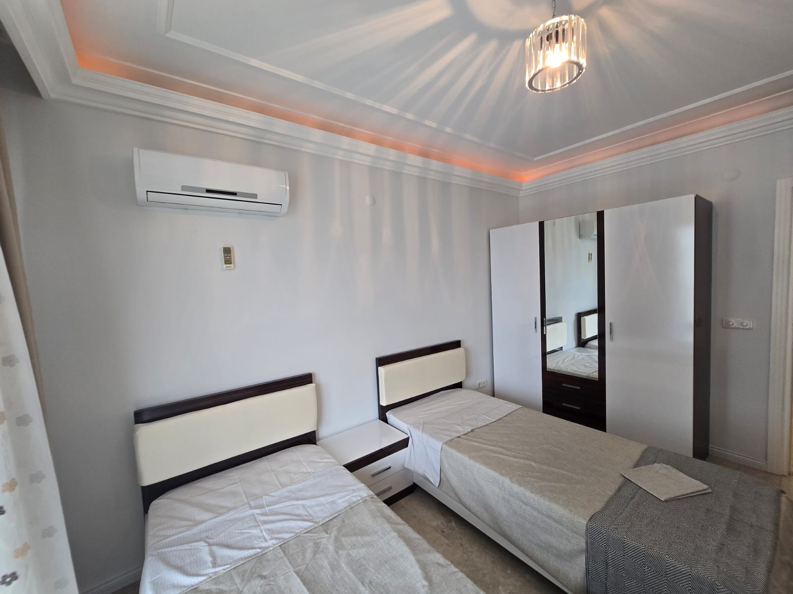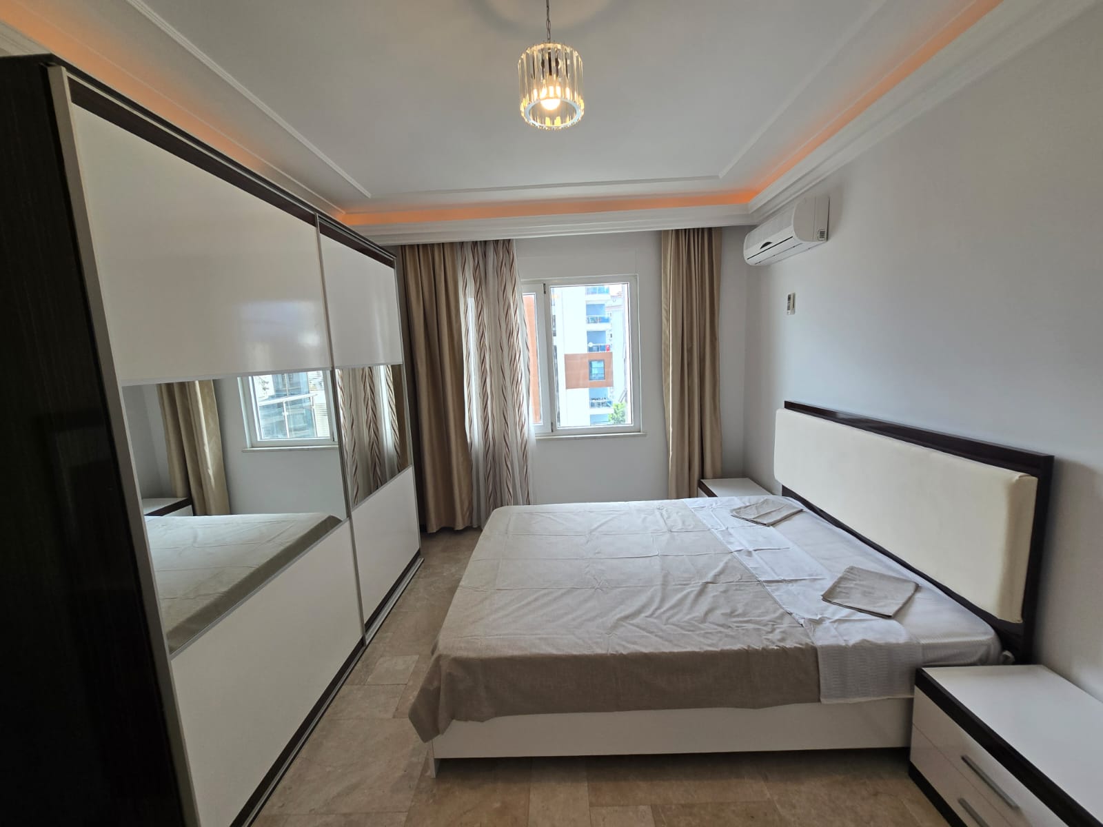 Квартира полностью меблирована и готова к заселению. Планировка 2+1 предполагает две отдельные спальни, гостиную, кухню и санузел. Большая площадь в 115 м² обеспечивает простор и комфорт для всей семьи. Из окон открываются прекрасные виды.