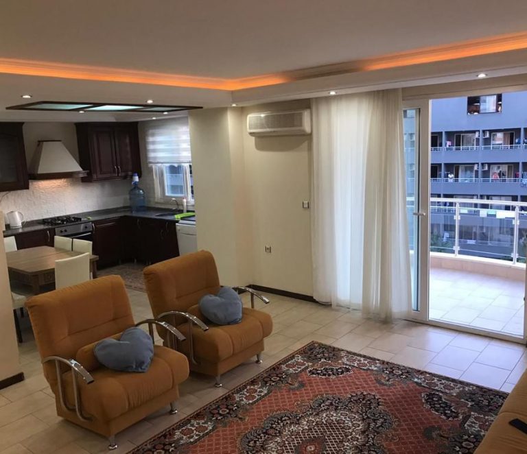 Квартира площадью 117 м² имеет планировку 2+1, что подразумевает две спальни, гостиную и отдельную кухню. Объект полностью меблирован, что позволяет заселиться сразу после покупки.