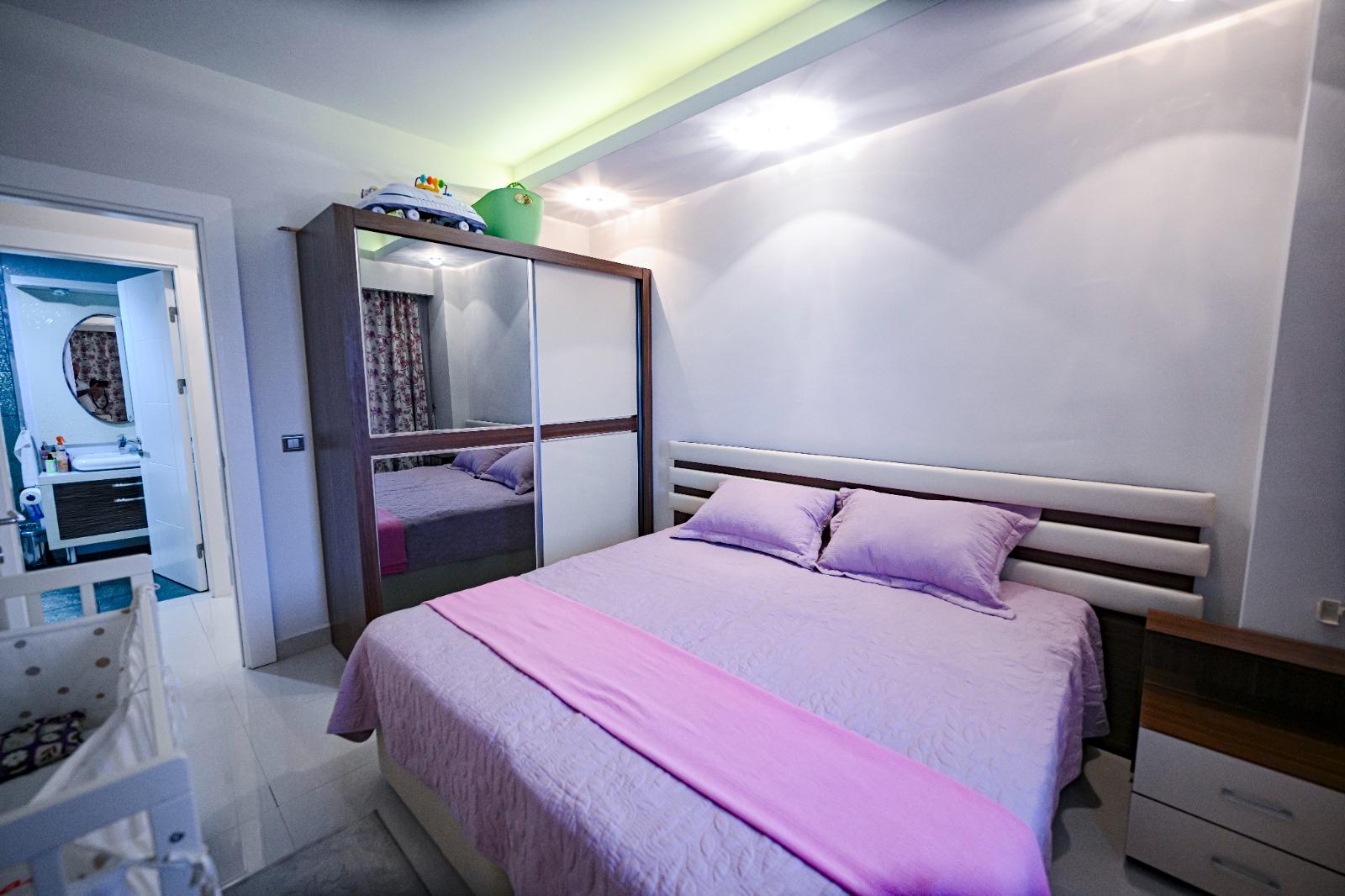 Квартира площадью 110 м² имеет практичную планировку 2+1, два отдельных санузла и полностью меблирована. Находится на 6 этаже, откуда открывается прекрасный вид на море и территорию комплекса с бассейном.