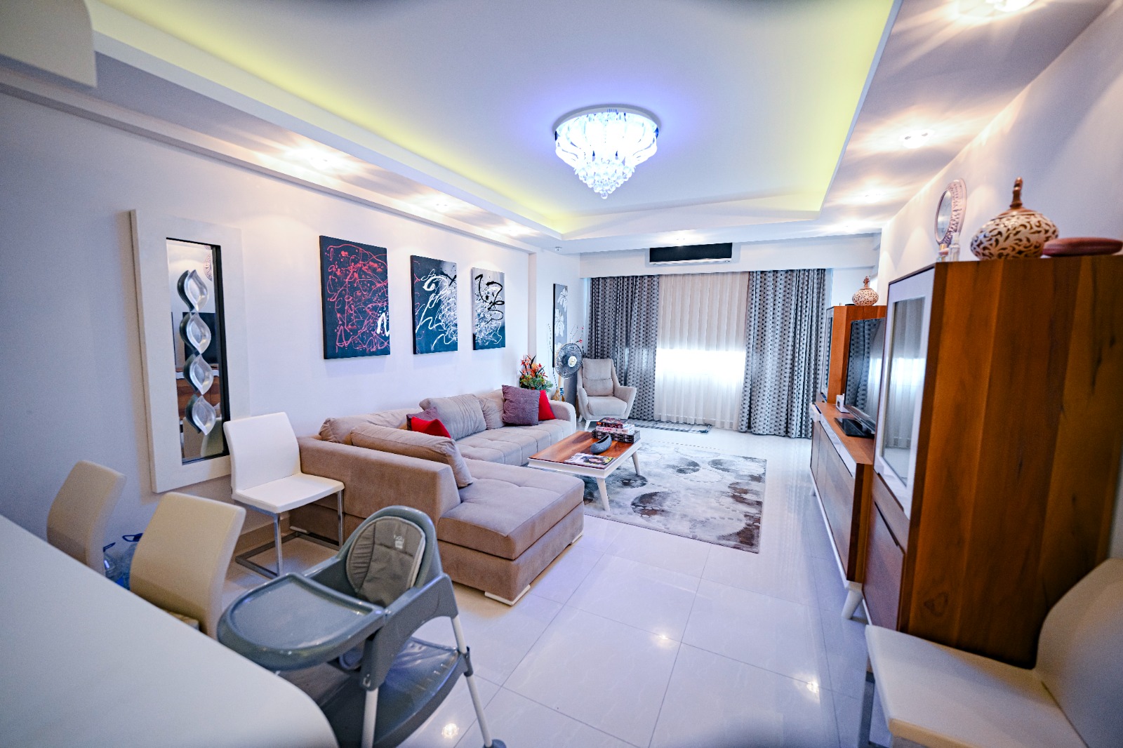Просторная квартира 2+1 площадью 110 м² на 6 этаже с видом на море и бассейн в современном комплексе с полной меблировкой. Идеальный вариант для жизни или инвестиций в популярном районе Махмутлар.
