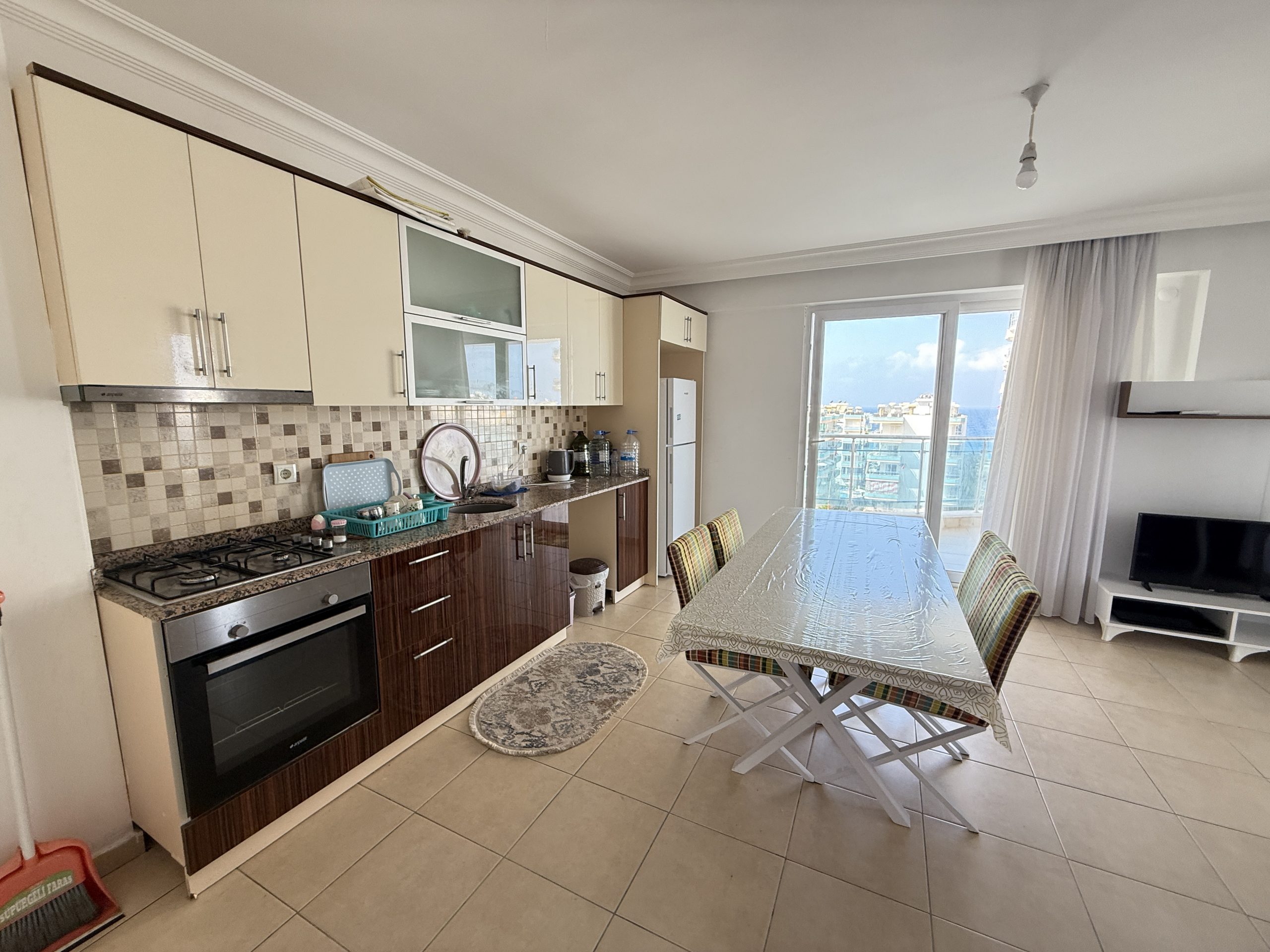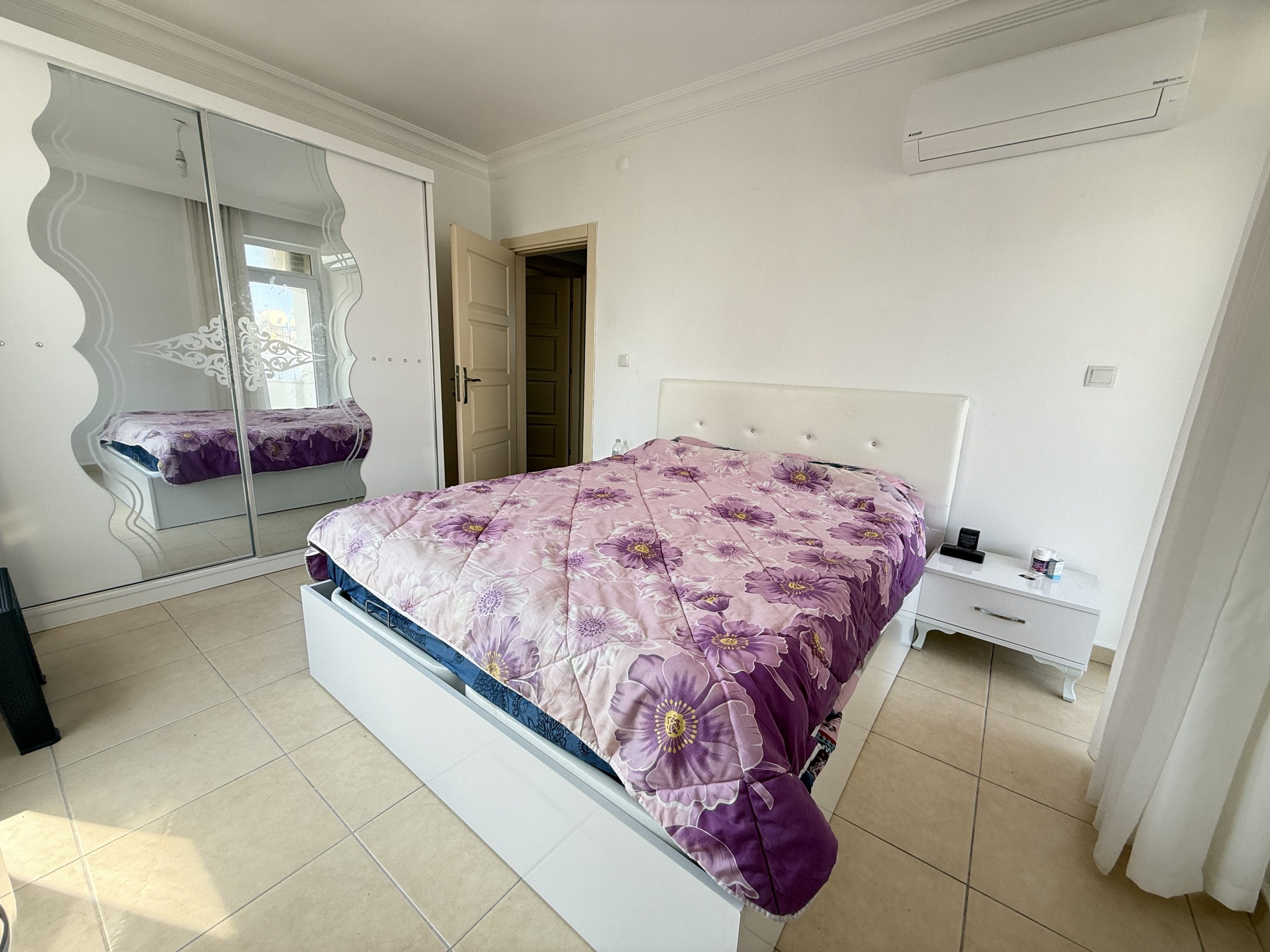 Квартира площадью 110 м² имеет практичную планировку 2+1: две спальни, гостиная, кухня и санузел. Объект полностью меблирован и готов к заселению. Отличный вариант как для личного проживания у моря, так и для инвестиций с целью сдачи в аренду.