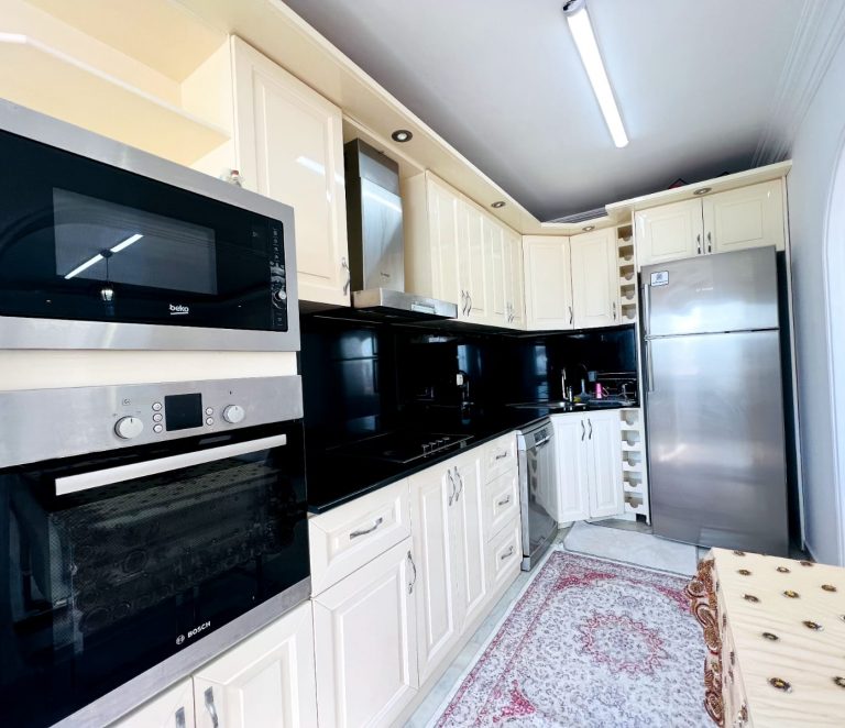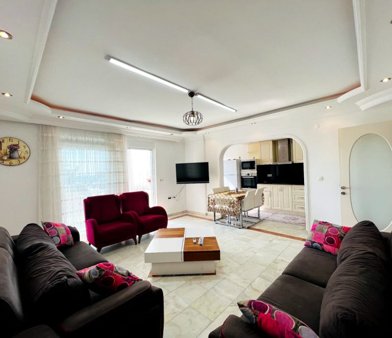 Просторная квартира 2+1 площадью 125 м² на первом этаже с двумя балконами и панорамным видом на море. Полностью меблирована и готова к заселению, представляет собой отличную инвестицию или вариант для комфортной жизни у моря.