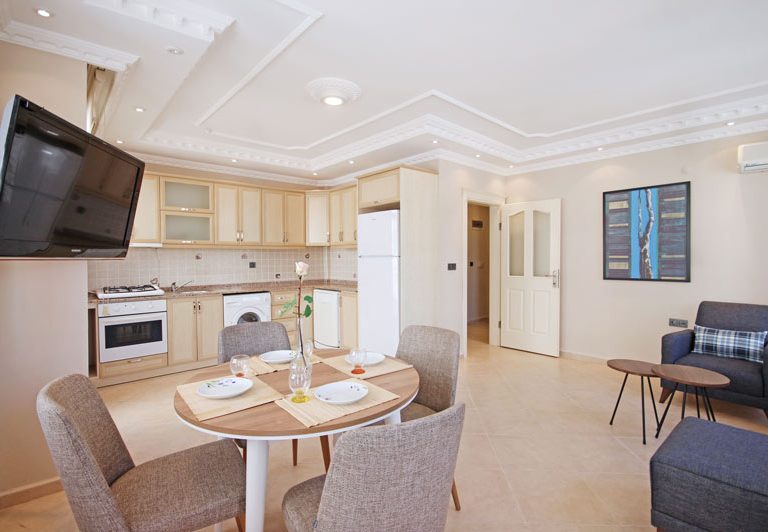 Просторная квартира 2+1 площадью 100 м² на 4 этаже современного комплекса с бассейном, всего в 400 метрах от моря. Полностью меблирована, идеальна для инвестиций, сдачи в аренду или жизни на побережье.