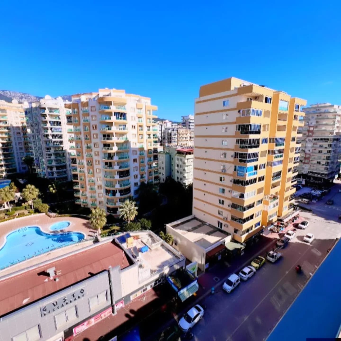 Комплекс находится в популярном районе Махмутлар, Аланья. До пляжа и моря — всего 450 метров пешком. Район отличается развитой инфраструктурой: магазины, кафе, рестораны, транспортная доступность и все необходимое для жизни находятся в шаговой доступности.