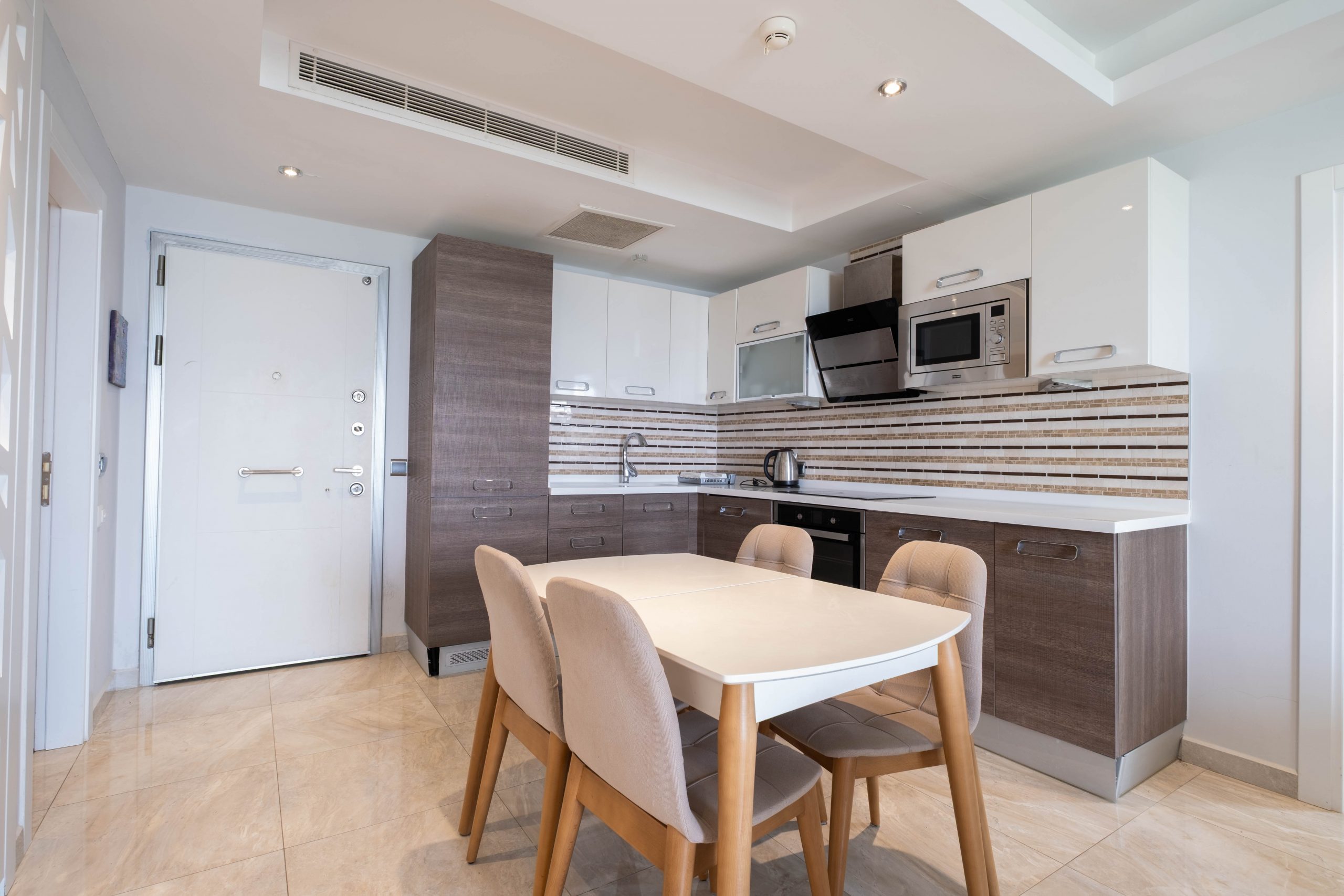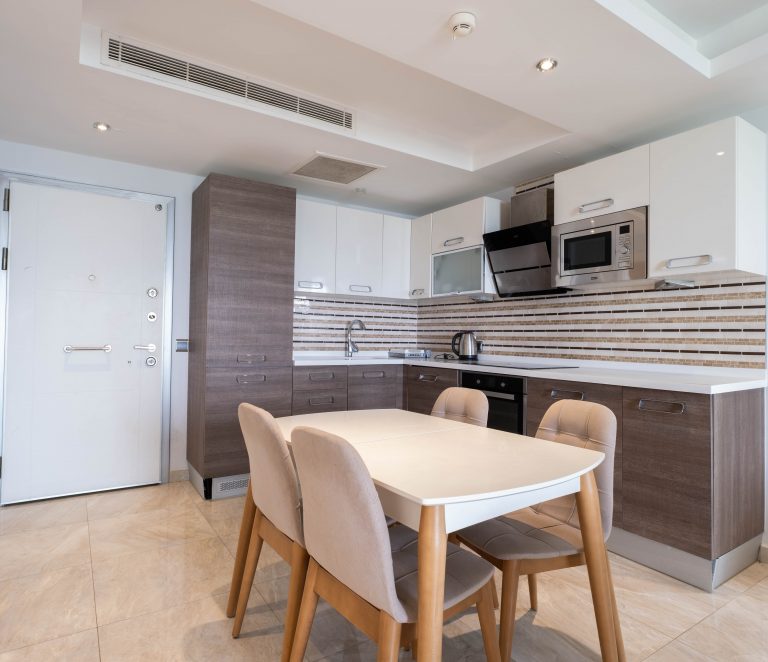 Квартира площадью 110 м² имеет практичную планировку 2+1 с двумя отдельными спальнями и просторной гостиной. В объекте два санузла, что идеально для семьи или приема гостей. Полная меблировка и отделка позволяют заселиться сразу после покупки.