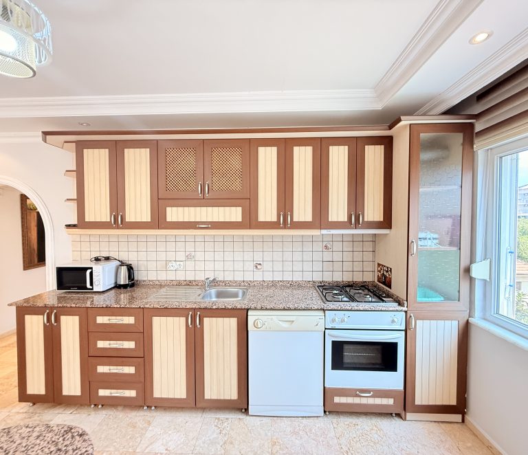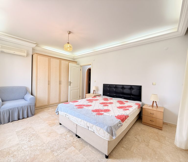 Квартира площадью 115 м² имеет практичную планировку 2+1, что подразумевает две отдельные спальни, гостиную, совмещенную с кухней, и санузел. Объект продается по системе «все включено» (PAS), финальная цена 129 000 евро уже включает все комиссии.