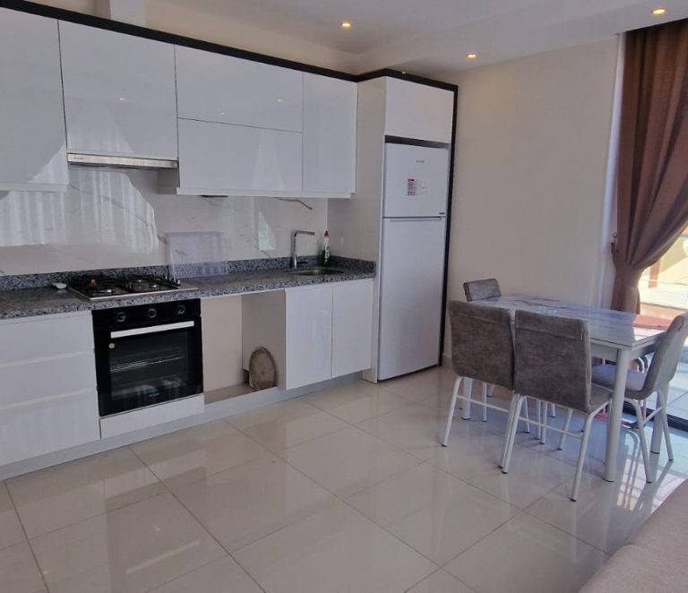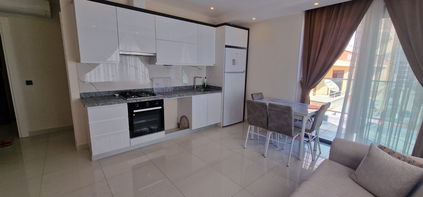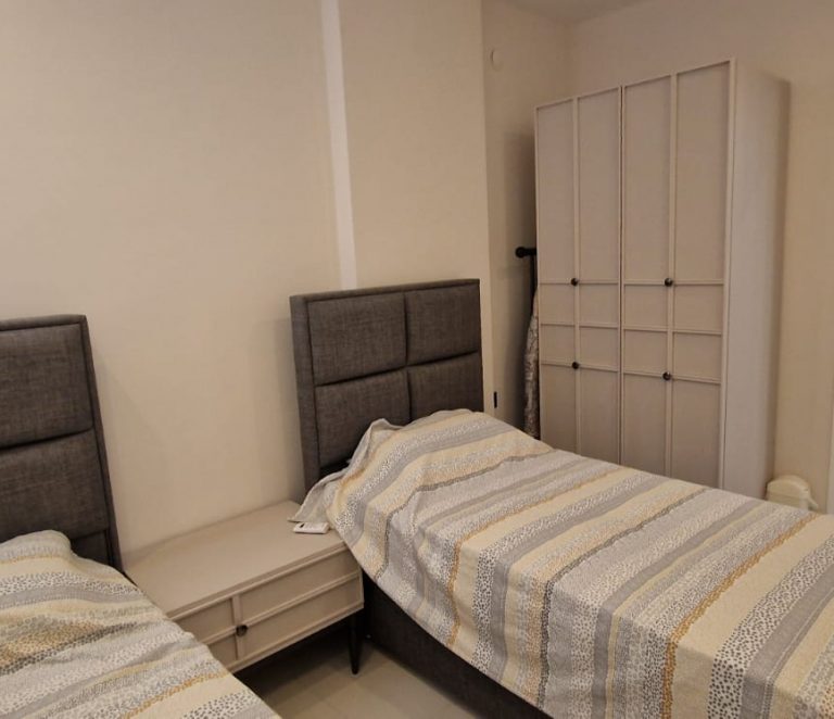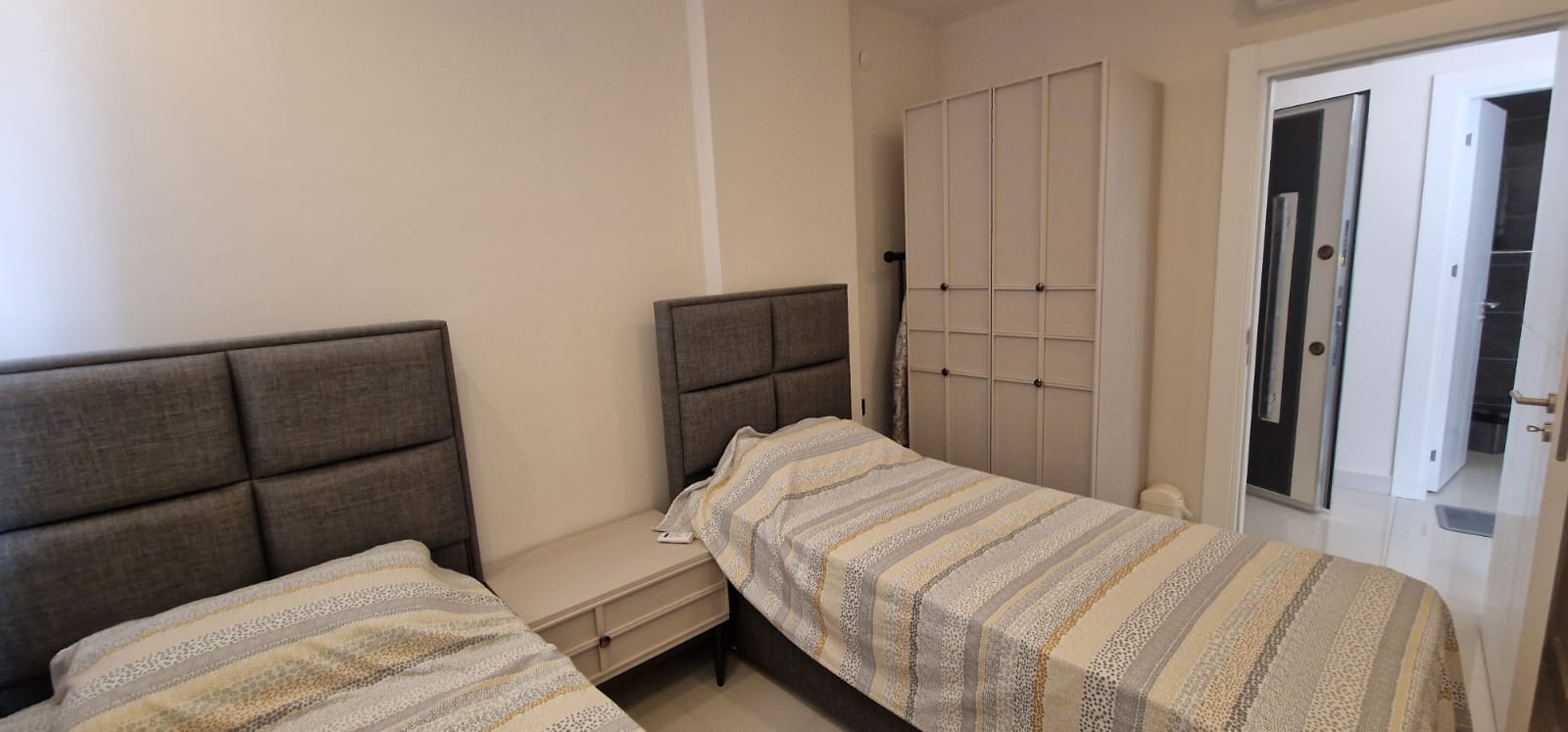 Квартира расположена на 3 этаже. Планировка 2+1 включает две спальни, гостиную, отдельную кухню и санузел. Объект сдаётся полностью меблированным, что позволяет заселиться сразу после покупки.