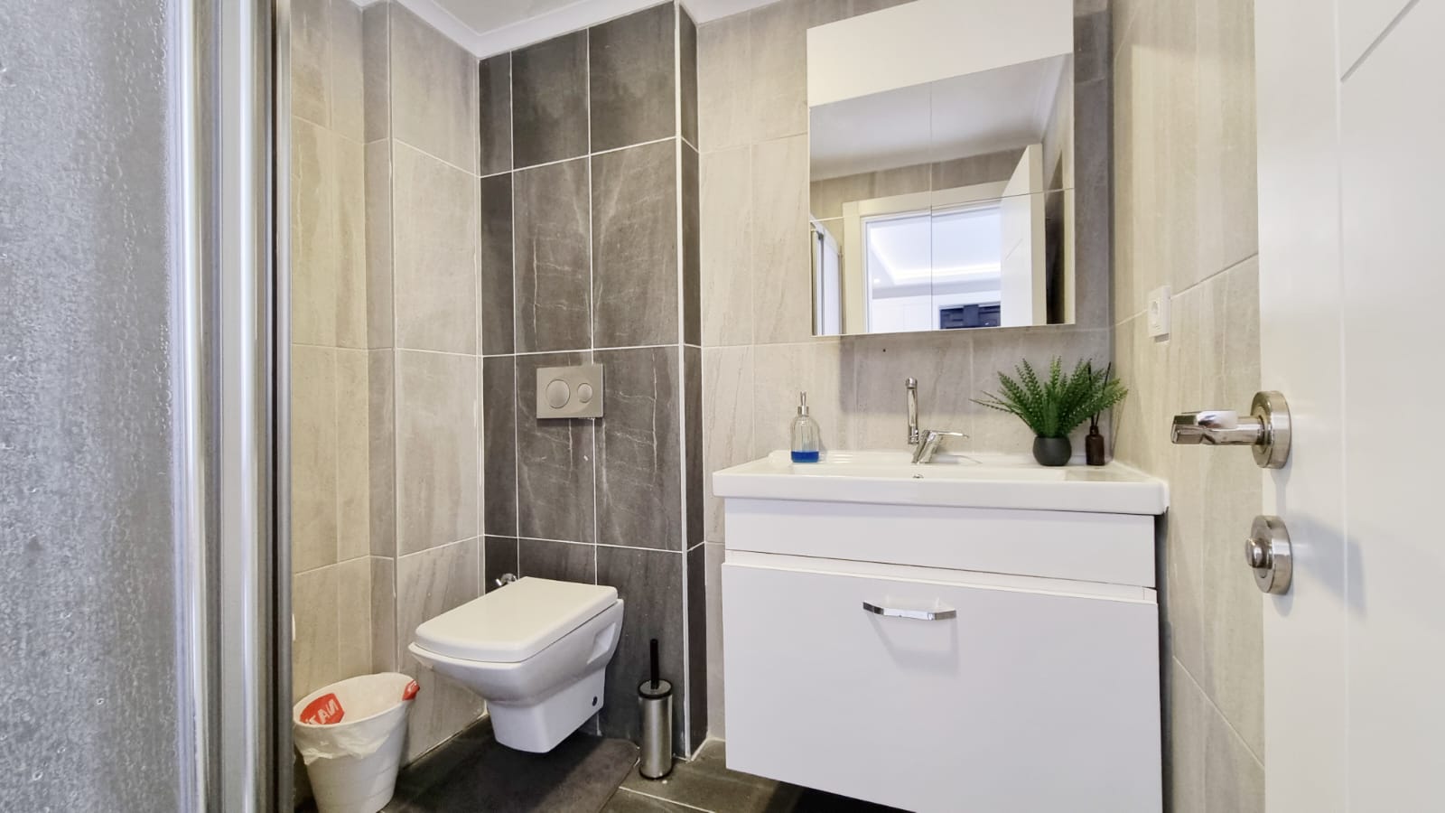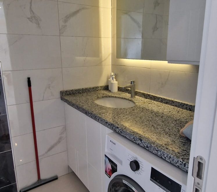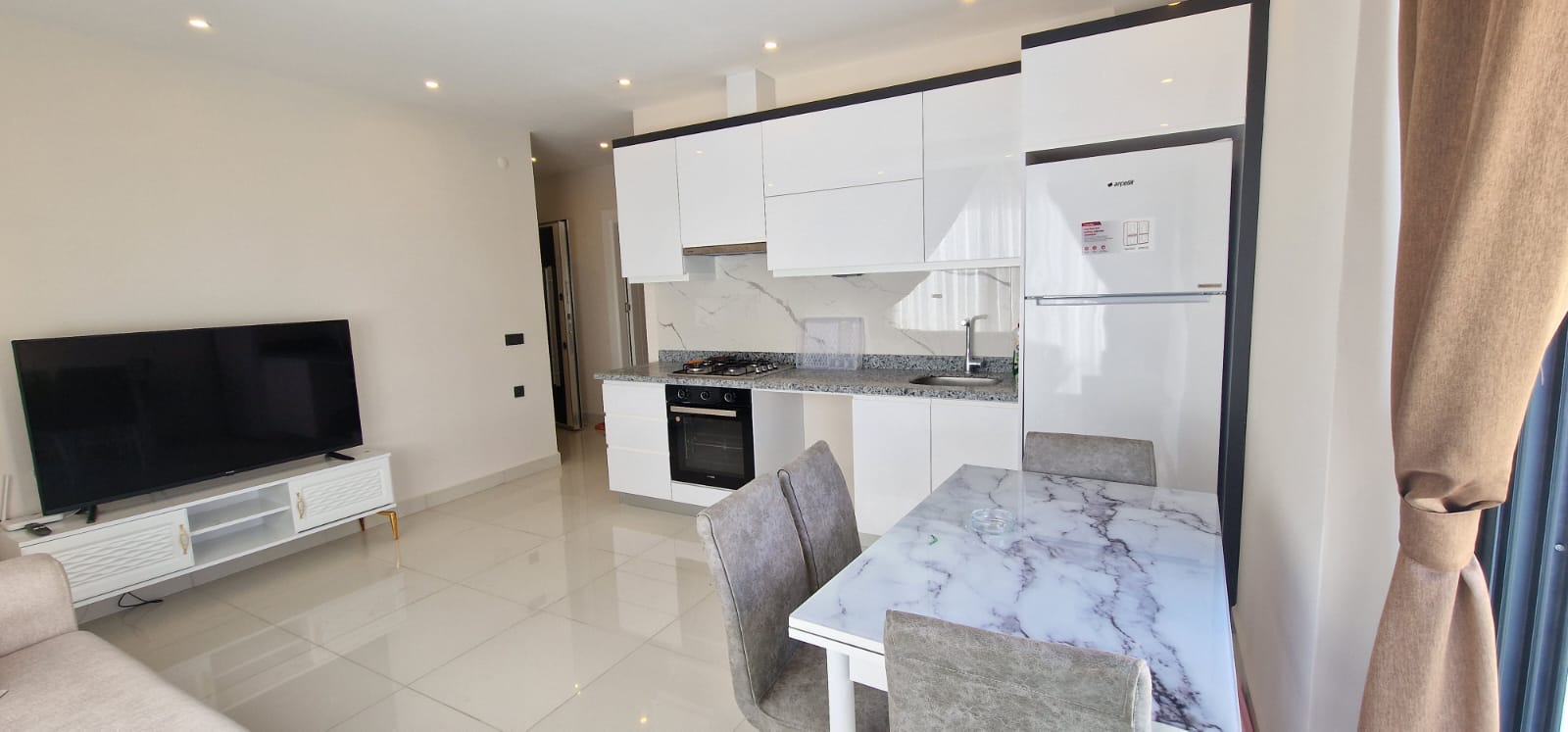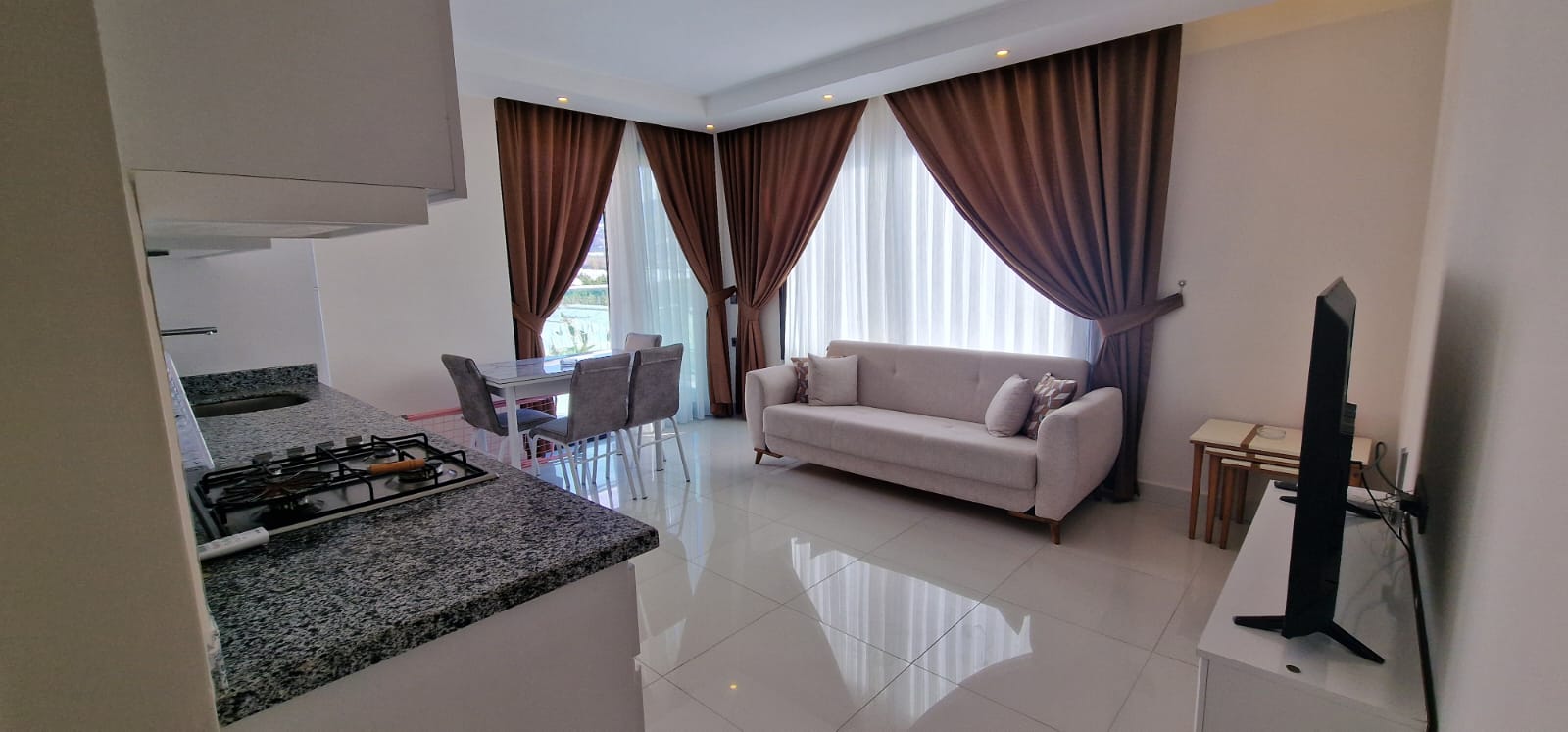 Квартира расположена на 3 этаже. Планировка 2+1 включает две спальни, гостиную, отдельную кухню и санузел. Объект сдаётся полностью меблированным, что позволяет заселиться сразу после покупки.