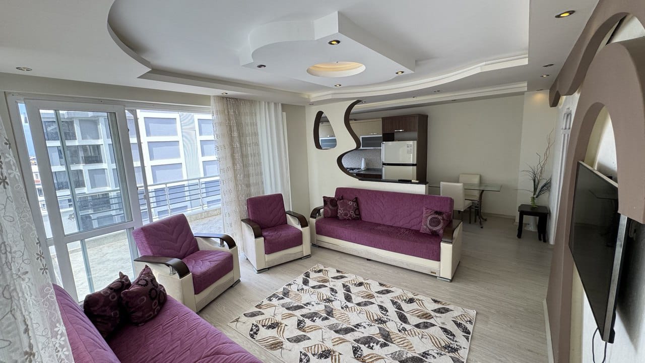 Апартаменты расположены на 7 этаже 8-этажного здания и обладают ключевым преимуществом — невероятной панорамой на море и историческую крепость Аланьи. Квартира функциональной планировки 2+1 готова к заселению.
