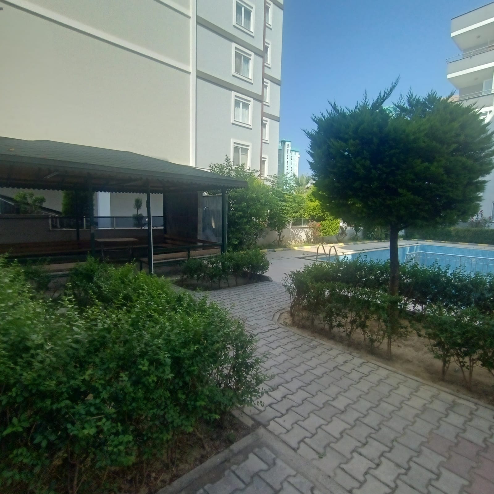 Пятиэтажный современный комплекс с ухоженной территорией, бассейном, зеленым садом и зоной для барбекю. Для комфорта жителей предусмотрен лифт. Управление и коммунальные платежи организованы эффективно, что обеспечивает низкие ежемесячные расходы.