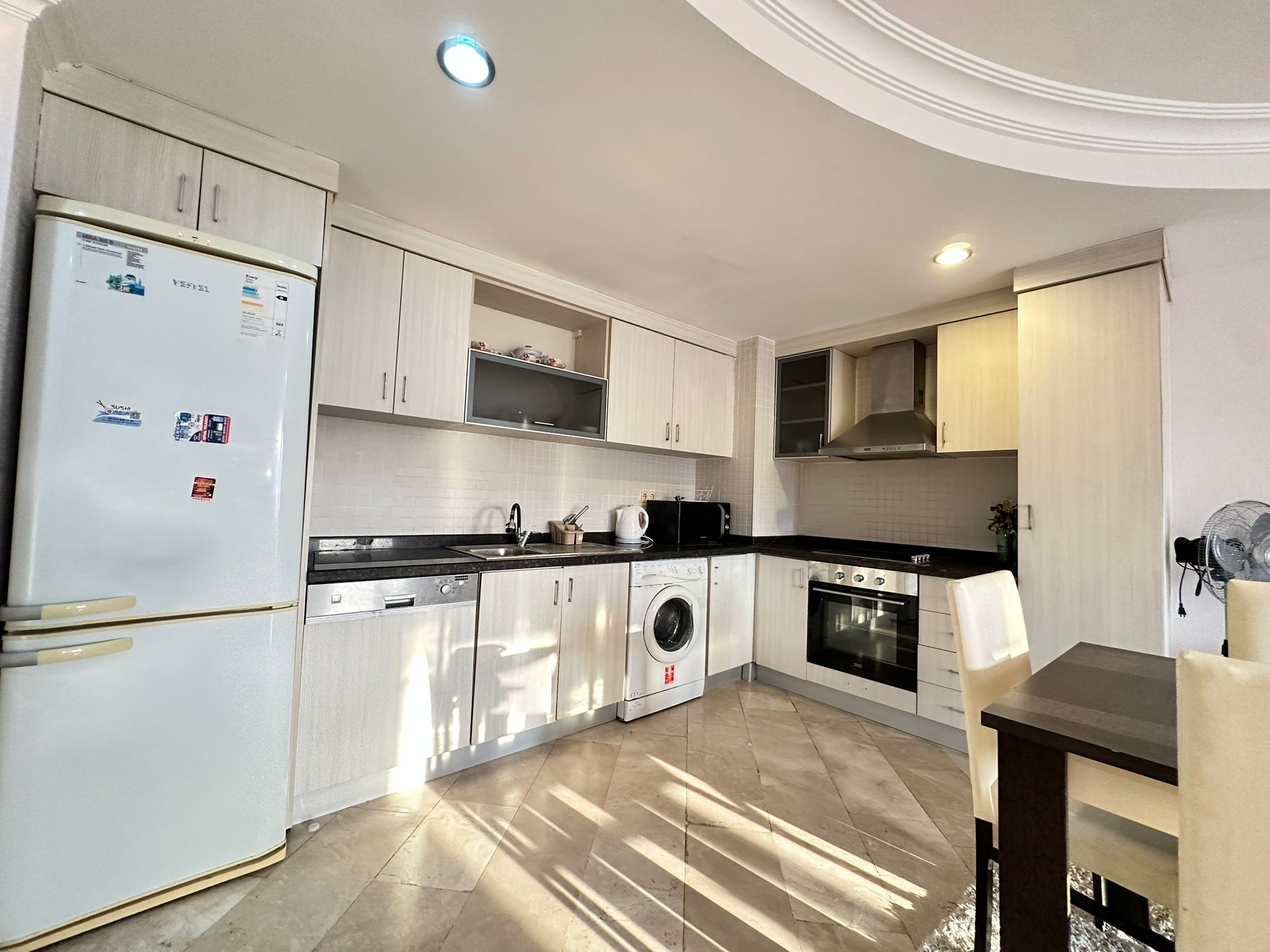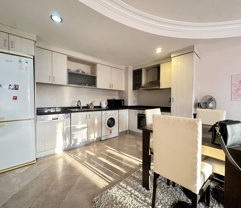 Просторная двухкомнатная квартира 2+1 площадью 129 м² на высоком этаже с полной меблировкой в современном комплексе премиум-класса. Идеальный вариант для комфортного проживания у моря или выгодной инвестиции.