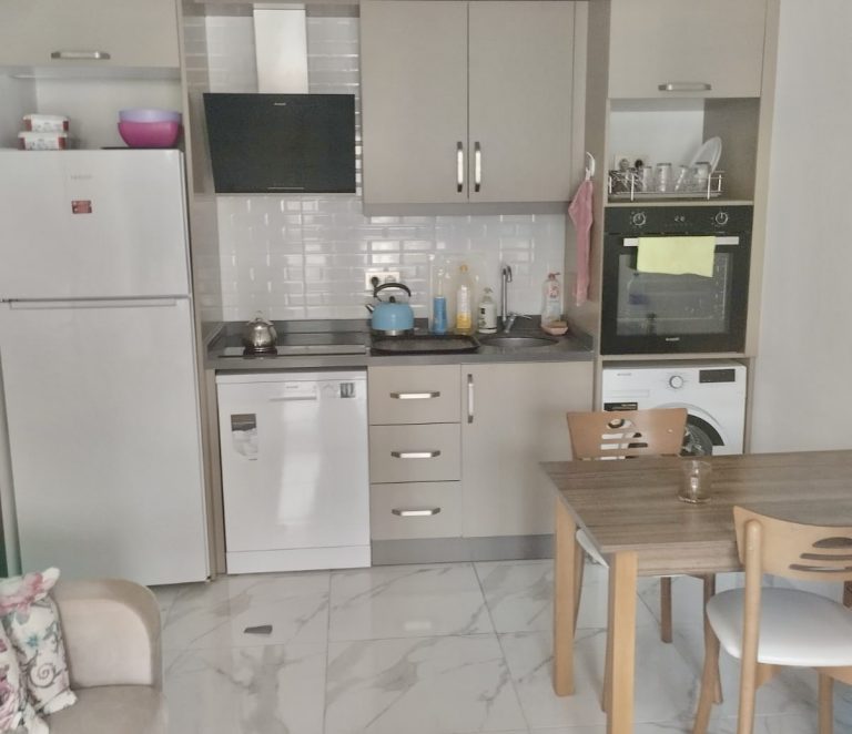 Квартира площадью 85 м² имеет планировку 2+1, две спальни, полностью оборудованный санузел. Из больших балконов открывается захватывающий вид. Отделка и мебель соответствуют современным стандартам качества.