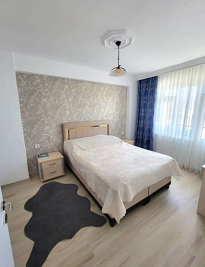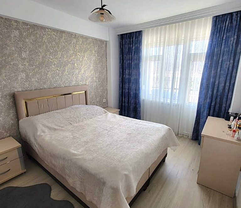 Квартира площадью 85 м² имеет практичную планировку 2+1: две отдельные спальни, просторная гостиная, совмещенная с американской кухней, и санузел. Панорамные окна обеспечивают помещение обилием естественного света. Состояние объекта отличное, готово к заселению.