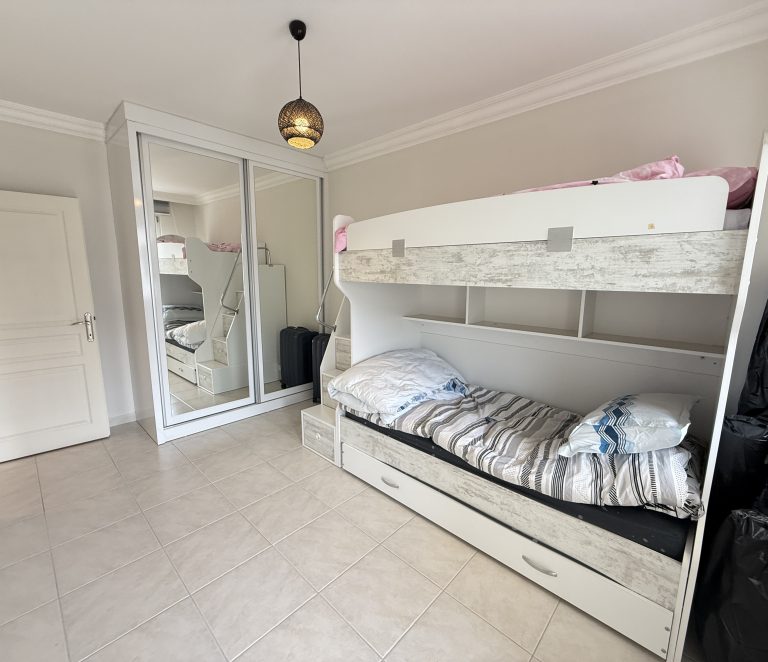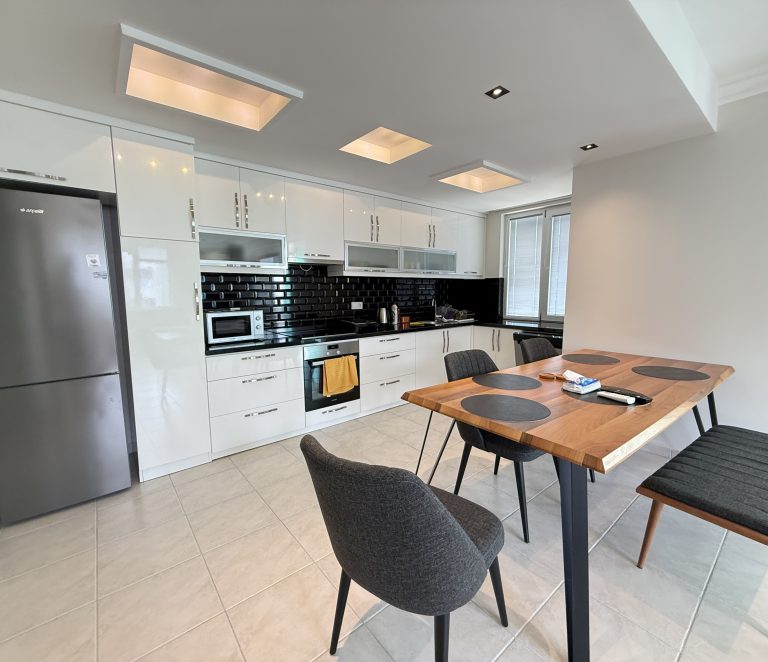 Апартаменты полностью меблированы и готовы к заселению. Квартира находится на 5 этаже 9-этажного здания, что гарантирует прекрасный вид и хорошую инсоляцию. Планировка 2+1 с отдельными спальнями и гостиной, объединенной с кухней, оптимальна для семьи.