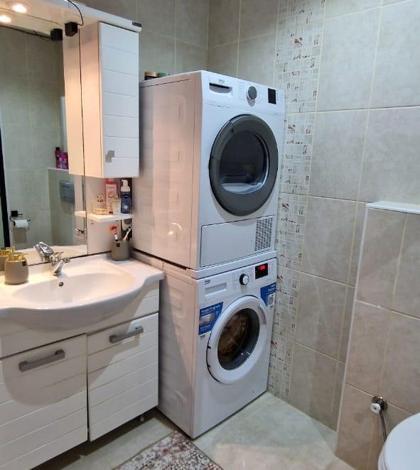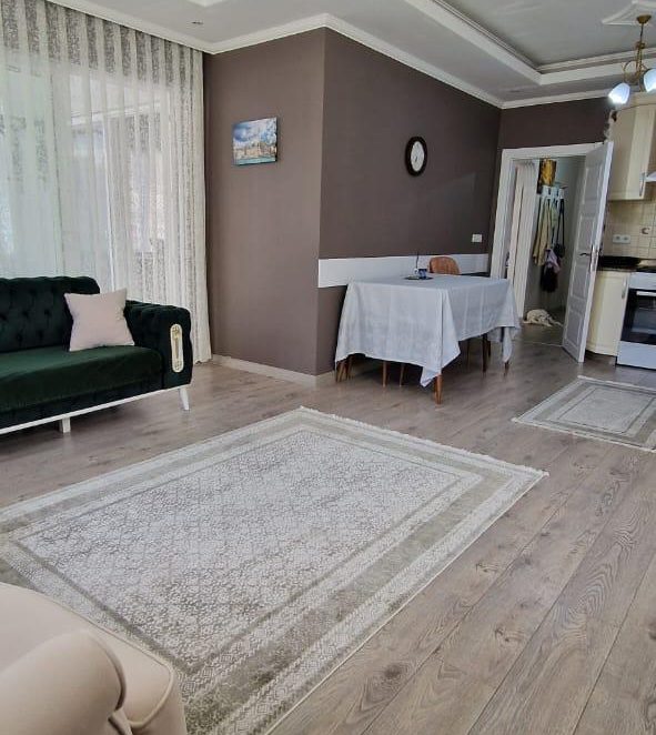 Апартаменты площадью 120 м² имеют практичную планировку 2+1, включающую две спальни, гостиную, кухню и санузел. Квартира полностью меблирована и готова к заселению. Нахождение на первом этаже делает ее особенно удобной для семей с детьми или пожилых людей.