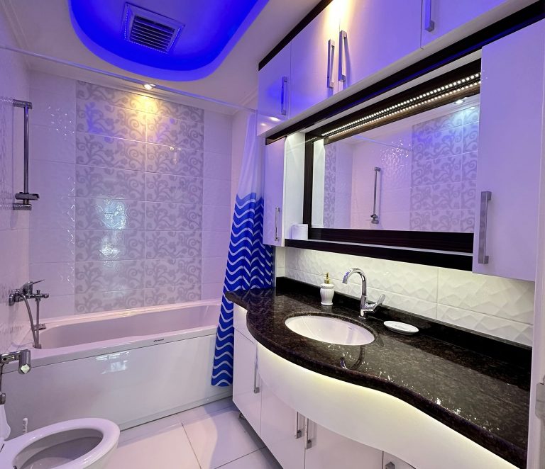 Квартира площадью 130 м² имеет практичную планировку 2+1, что включает две отдельные спальни и просторную гостиную. В квартире два санузла и два балкона. Объект полностью готов к заселению, продается с полной меблировкой.