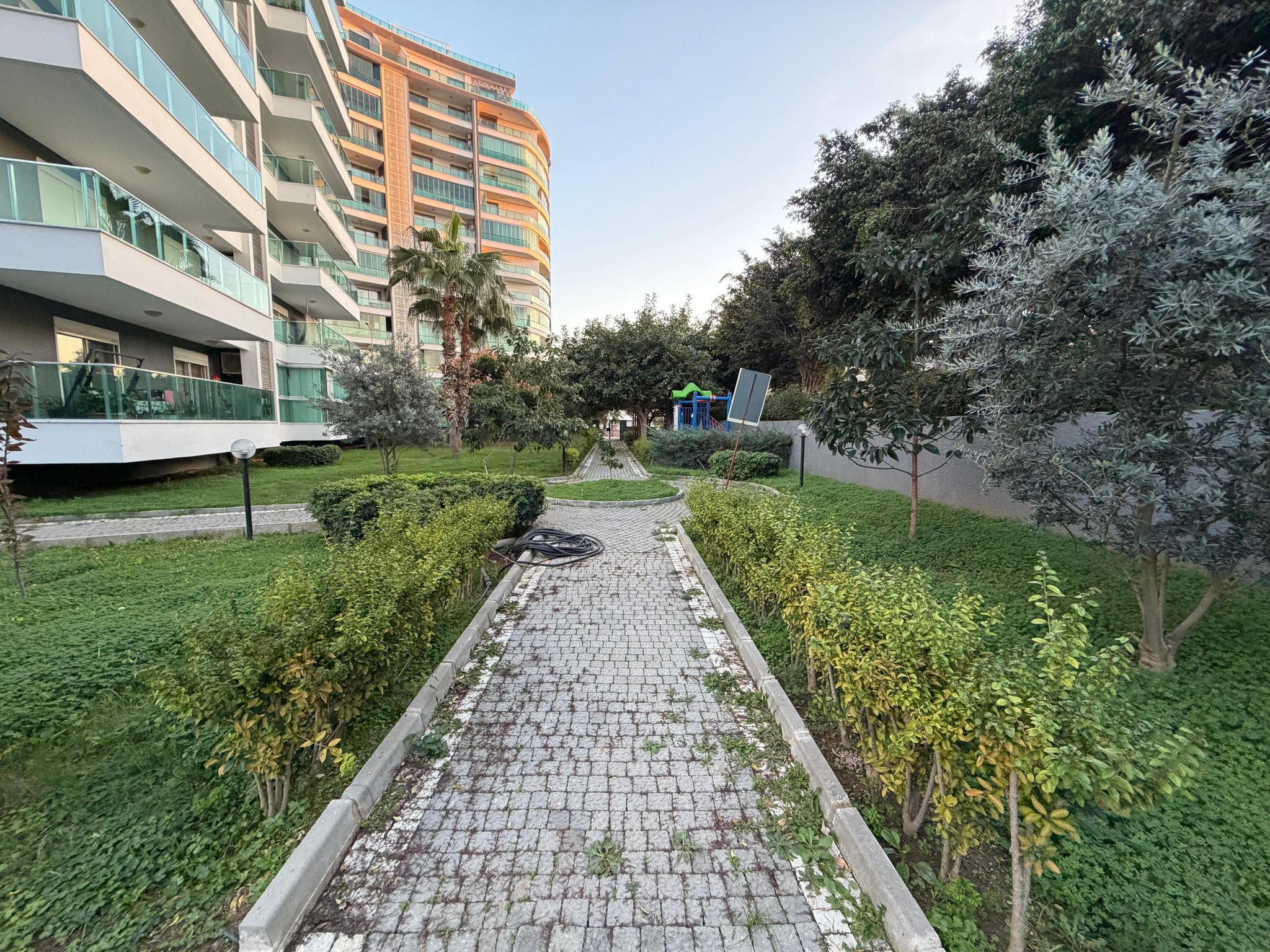 Комплекс расположен в популярном районе Махмутлар. До песчаного пляжа и моря — всего 700 метров (около 10 минут неспешной прогулки). В шаговой доступности находятся магазины, кафе, рынки и вся необходимая инфраструктура для жизни.