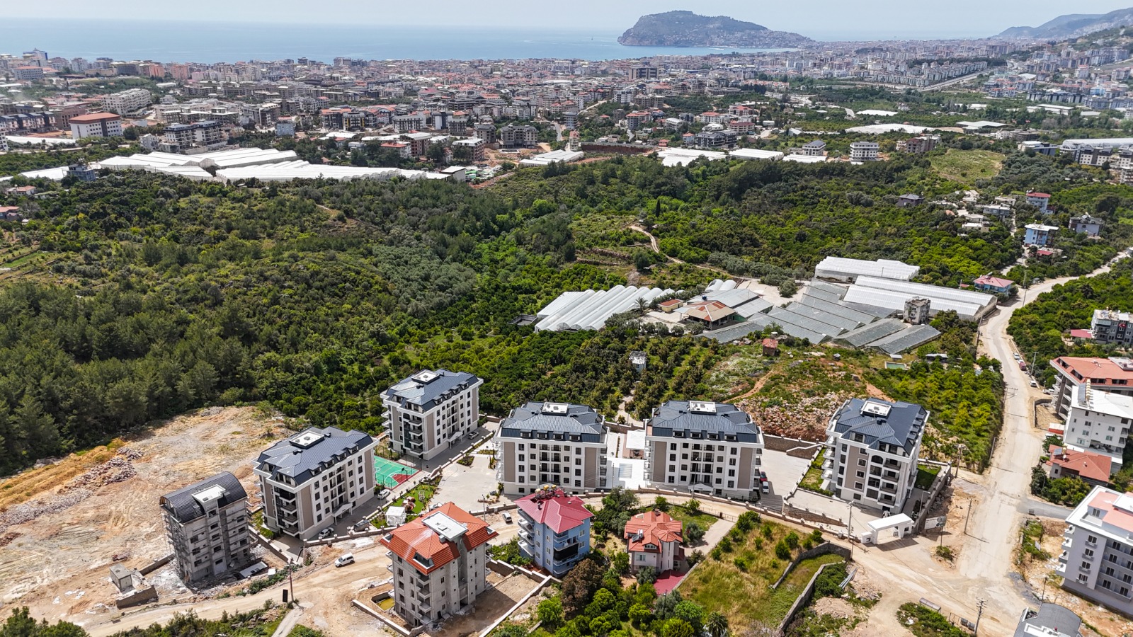 Комплекс расположен в популярном и спокойном районе Оба в Аланье. Главное преимущество — всего 1 км (около 10-15 минут неспешной прогулки) до песчаных пляжей и моря. Район отличается развитой инфраструктурой: в шаговой доступности магазины, кафе, рестораны и аптеки.
